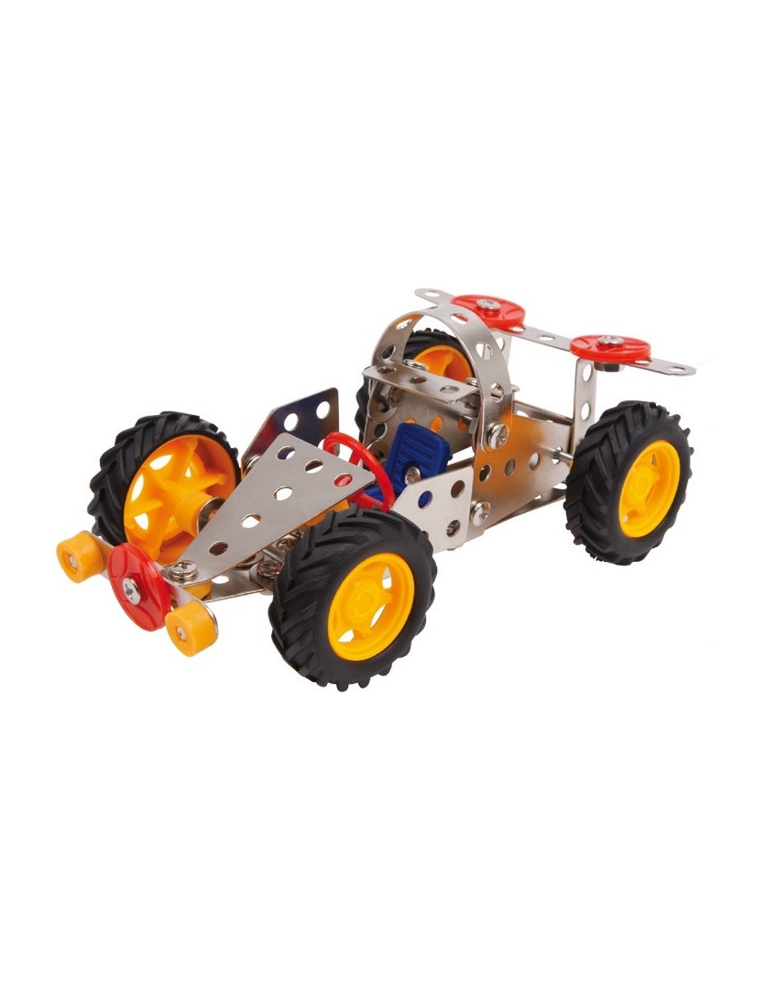 Un cotxe per armar amb 108 peces de metall i materials sintètics. Ideal per desenvolupar habilitats de coordinació, concentració i paciència als nens.