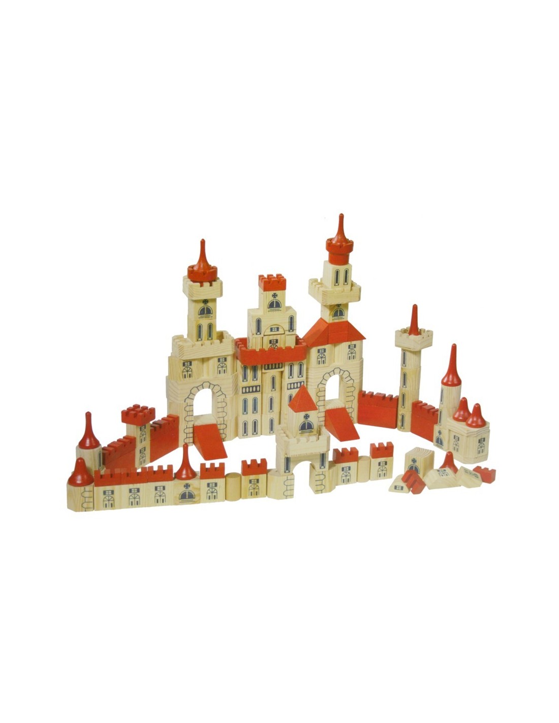 Aquest joc de construcció permet aixecar castells, torres i mons fantàstics amb peces de fusta massissa de faig en diferents colors. Una joguina educativa que fomenta la creativitat, la lògica i la motricitat fina.