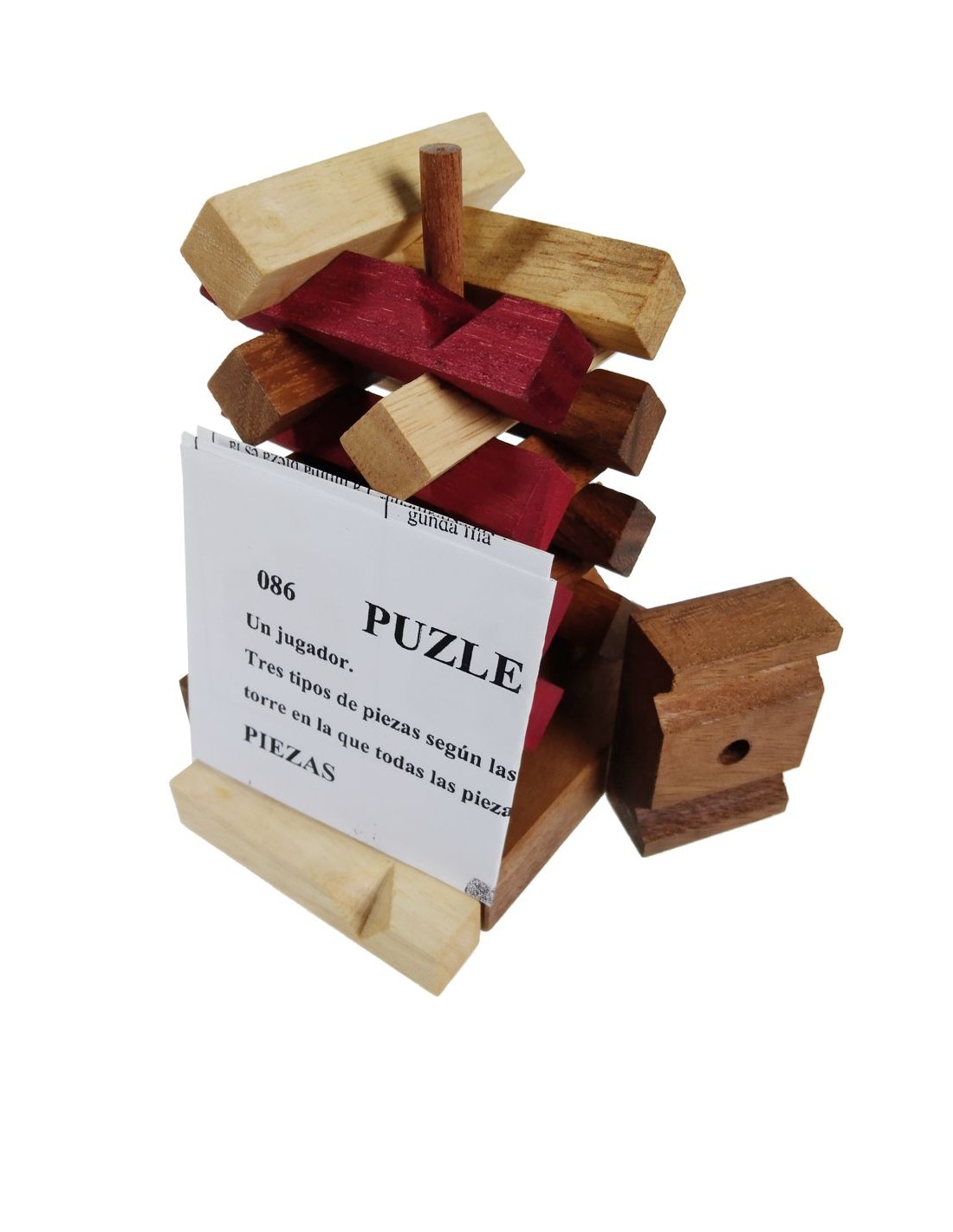 Joc de Trencaclosques Torre de Fusta. Joc d'Estratègia, Lògica, Entrenament i Habilitat: Mides: 14x9x9 cm.