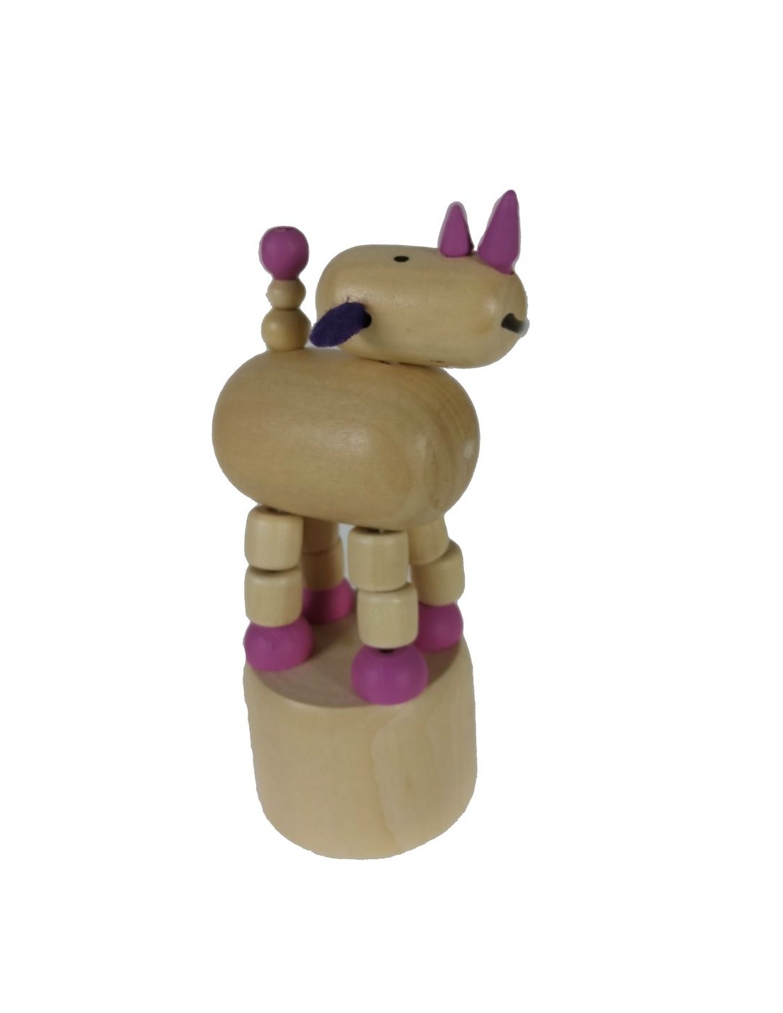 Rinoceront Articulat de Fusta Joguina Tradicional per prémer Joc d'Habilitat Infantil. Mides: 11x5cm.