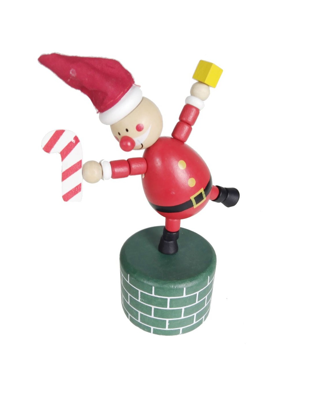 Santa Claus Articulat Joguina Tradicional de Fusta per prémer Joc d'Habilitat Infantil. Mides: 12xØ 4,5 cm.