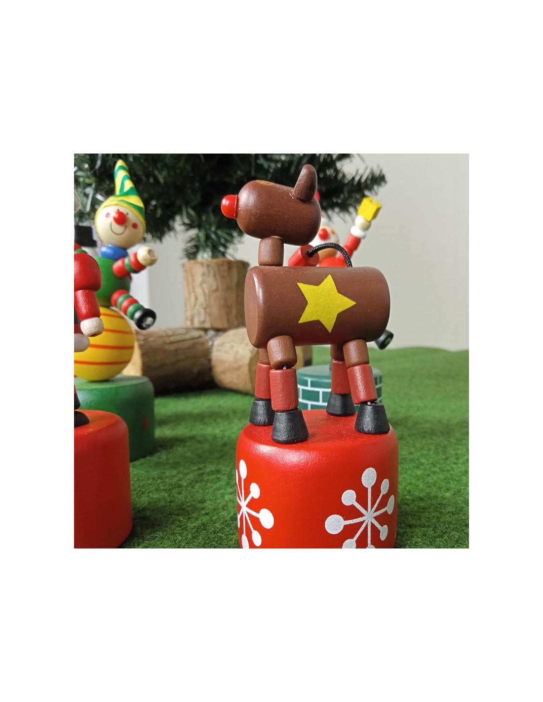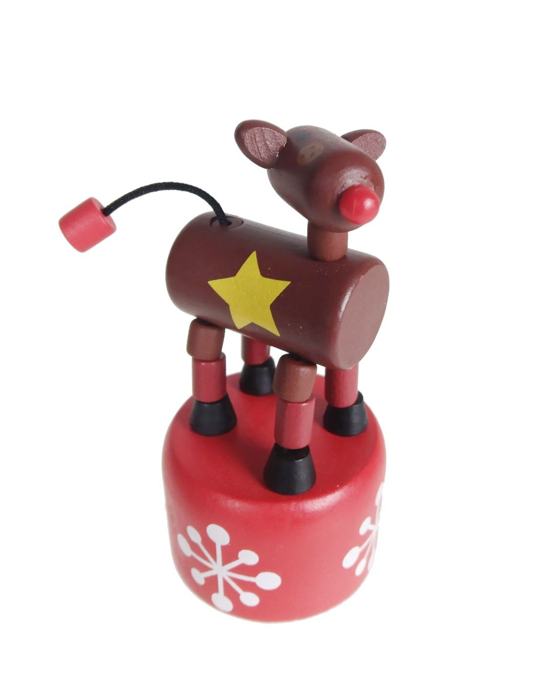 Reno de Nadal Articulat Joguina Tradicional de Fusta per prémer Joc d'Habilitat Infantil. Mides: 12xØ 4,5 cm.