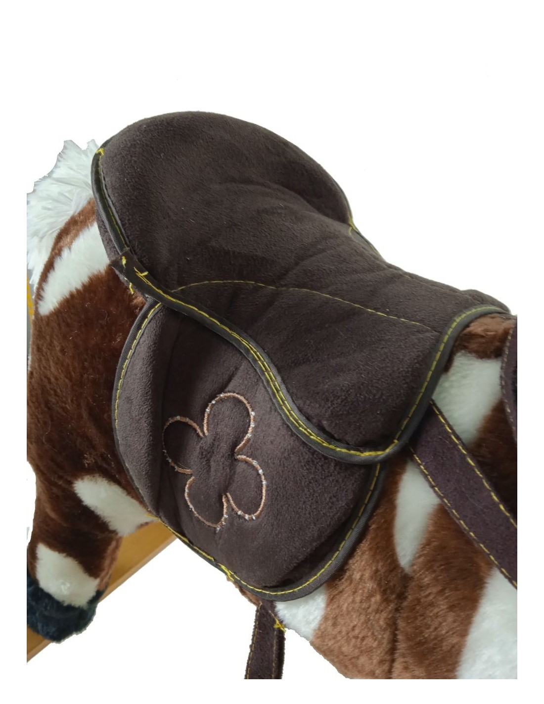 Equipa estreps i una vora encoixinada a la cadira per a més seguretat. En prémer les orelles, sorprèn amb sons de renills o galop, apropant l'experiència de muntar a cavall al joc infantil.