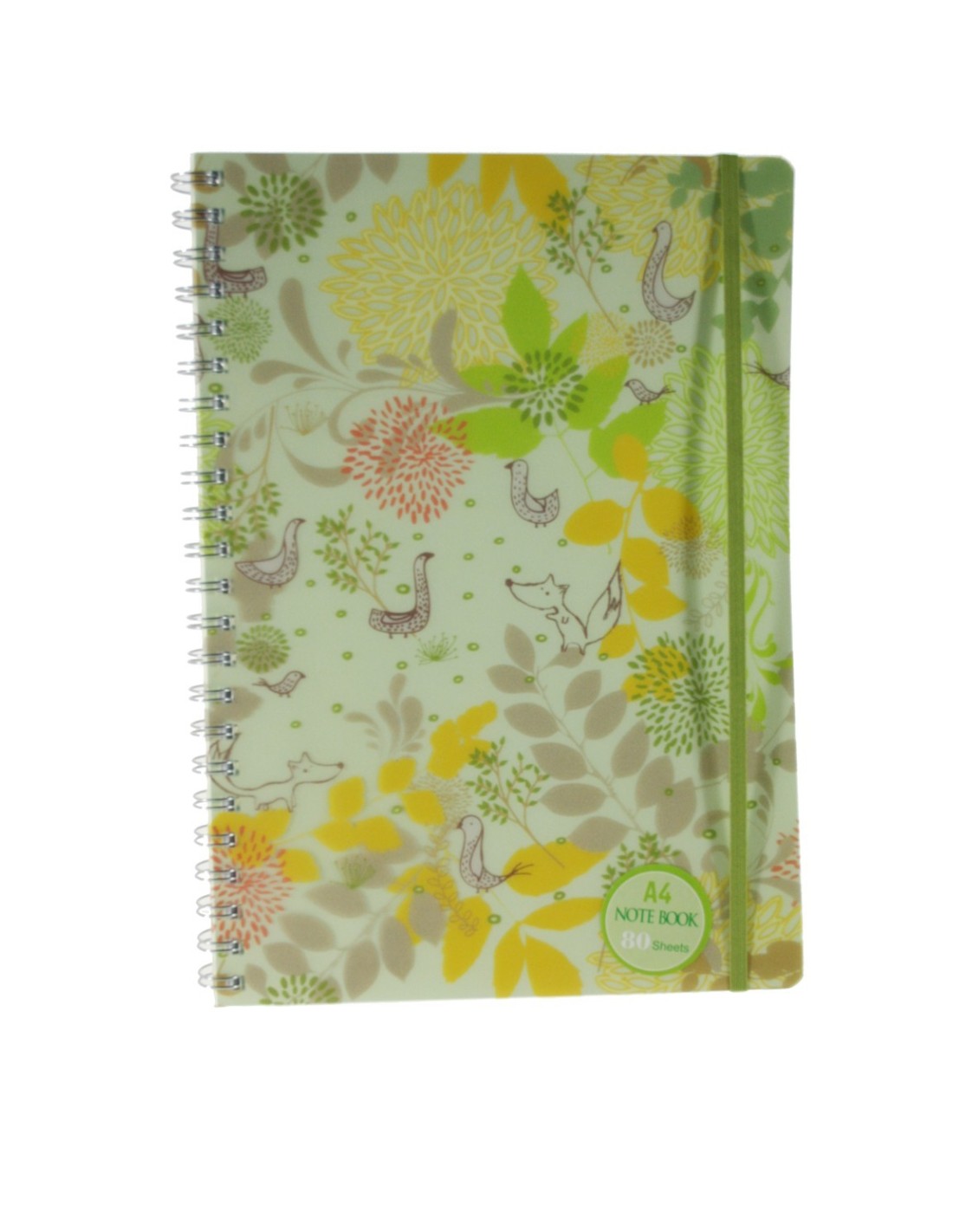 Llibreta Infantil amb Tapes Rígides Plastificades en color Verd de Fulles Rajades. Format: A4. Mides: 30x21 cm.