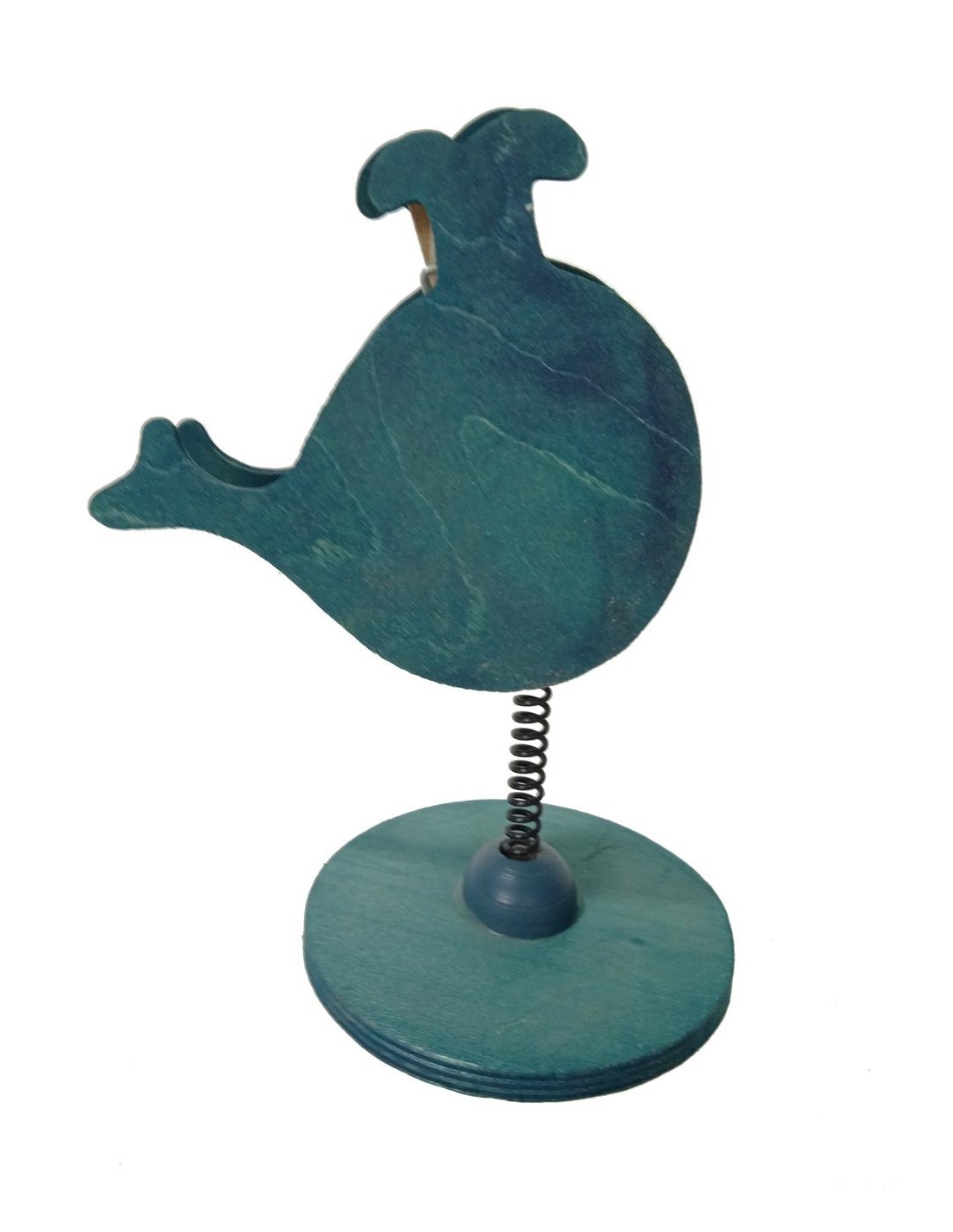 Clip de disseny balena realitzat amb fusta de color blau. Porta clip o subjecta, papers amb suport vertical ideal per exhibir targeta o foto. Un regal diferent per als més petits de la casa o fins i tot un divertit detall per als amics.