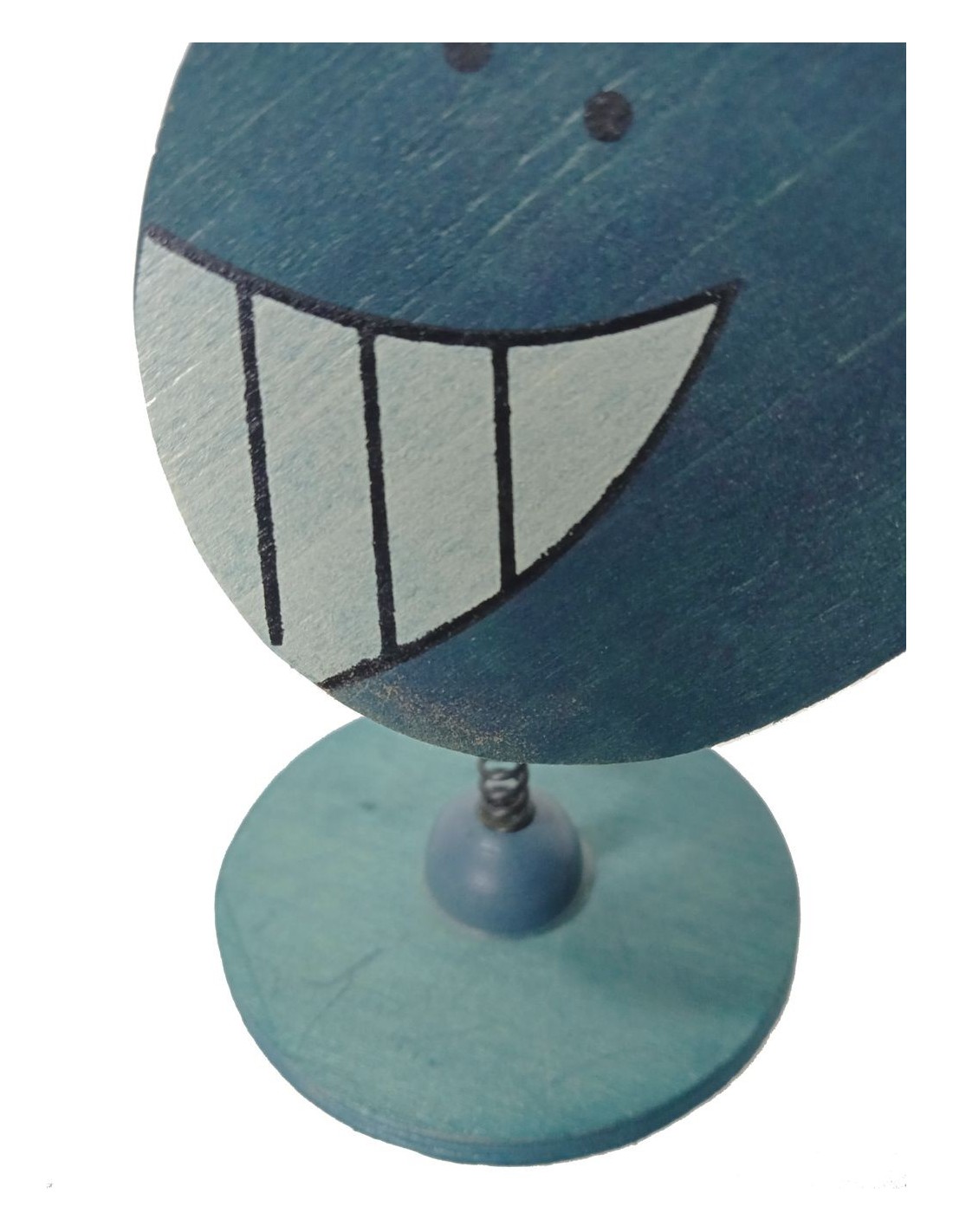 Pinça subjecta papers amb disseny de peix de balena tot de fusta i pintat de color blau amb suport vertical. Una pinça diferent i alegre per poder posar un missatge personalitzat a l'entrada del vostre rebedor. Ideal també per posar una foto i regalar-la.