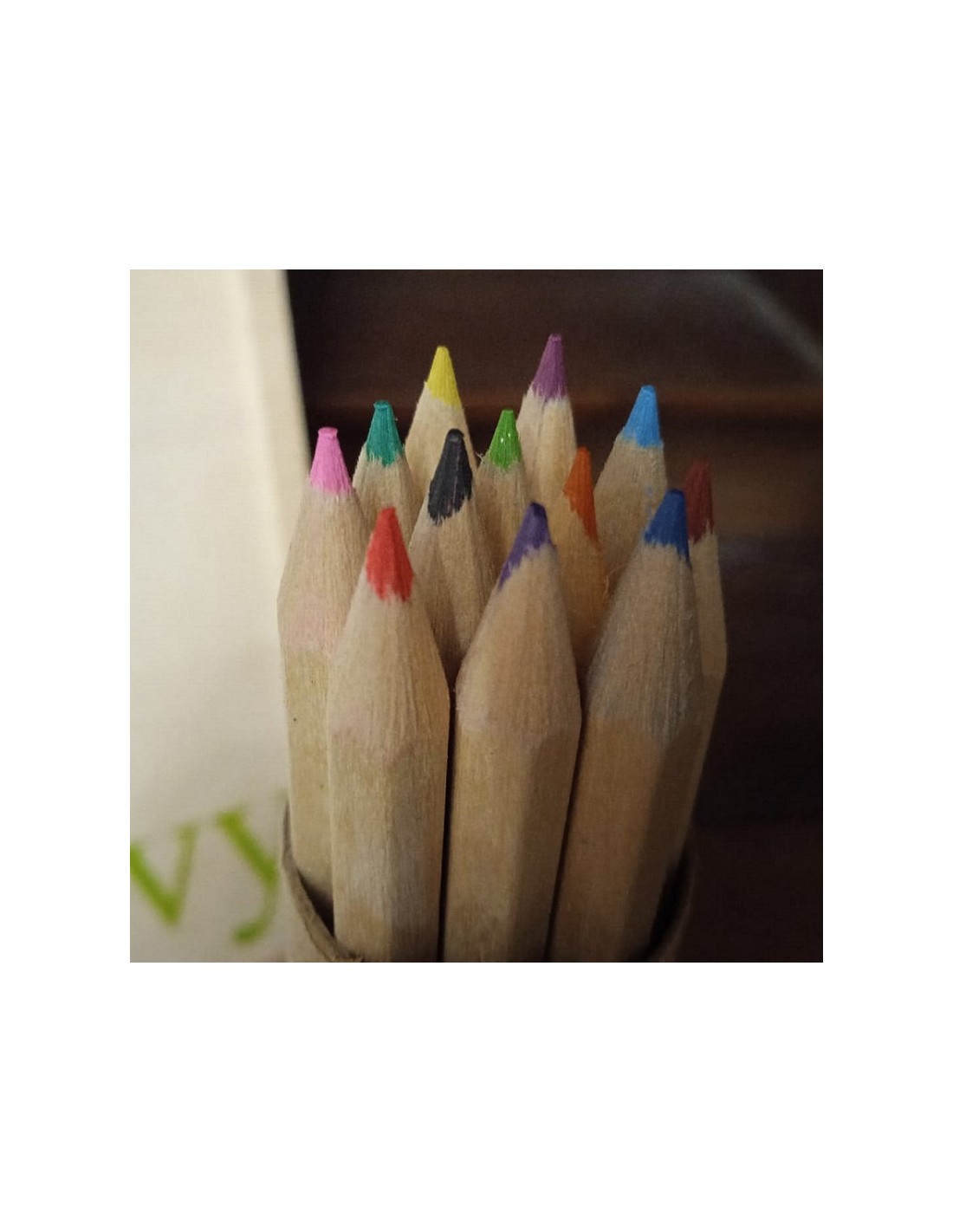 Canut de cartó rígid amb 12 llapis de colors únics, perfectes per a una varietat de projectes artístics. Compacte i pràctic per portar a qualsevol lloc.