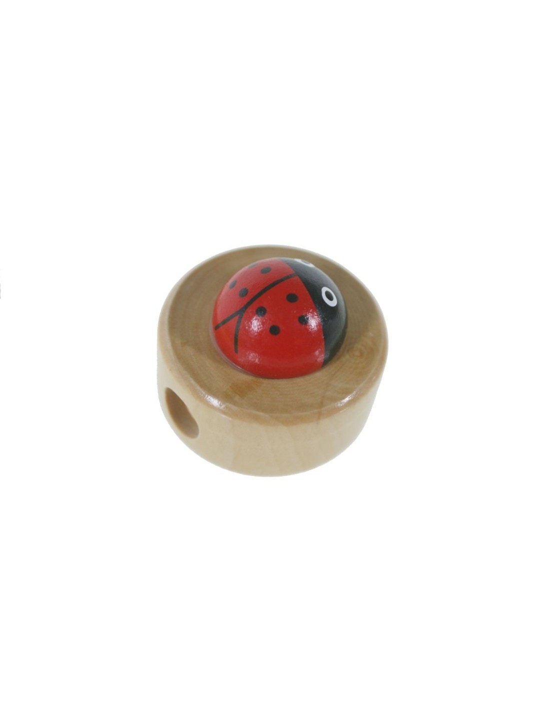 Maquineta de fusta amb figura marieta. Mesures: 3x3,5 Ø cm.