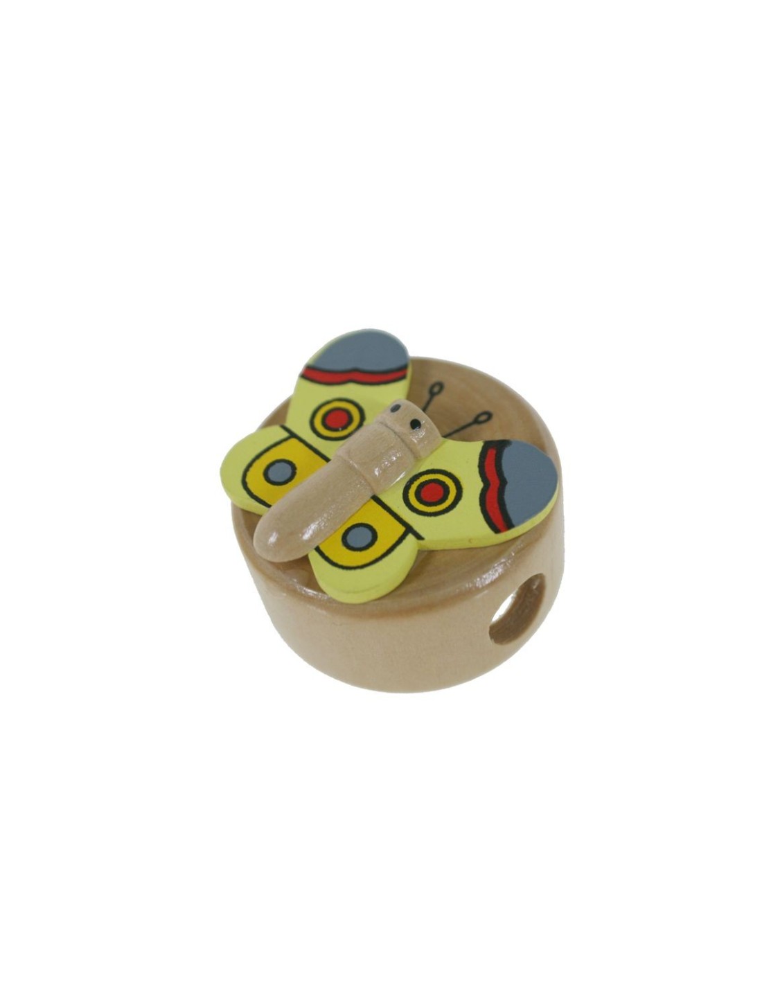Maquineta de fusta amb figura papallona. Mesures: 3x3,5 Ø cm.