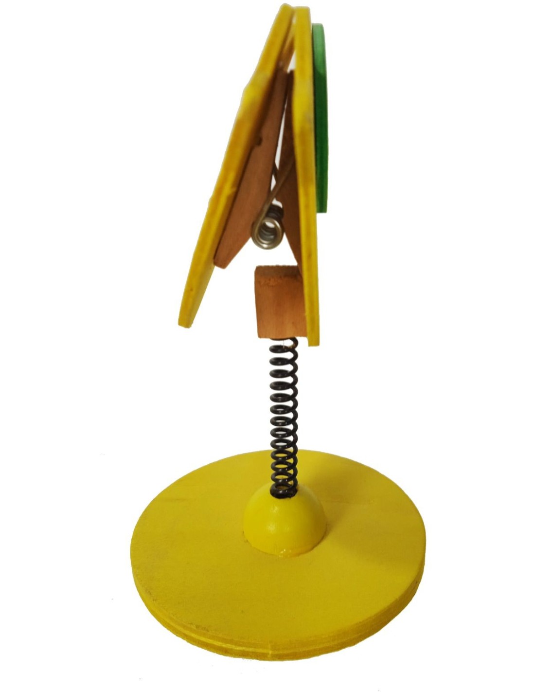 Clip de disseny pollet realitzat amb fusta de color groc. Porta clip o subjecta, papers amb suport vertical ideal per exhibir targeta o foto. Un regal diferent per als més petits de la casa o fins i tot un divertit detall per als amics.