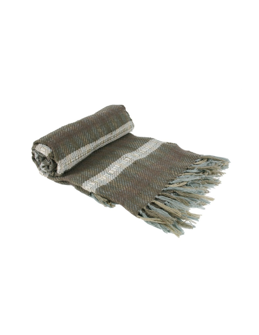 Manta marró bàsica amb serrells i ratlles. Fes-la servir com a protecció per al sofà o com a adorn elegant per al teu llit.