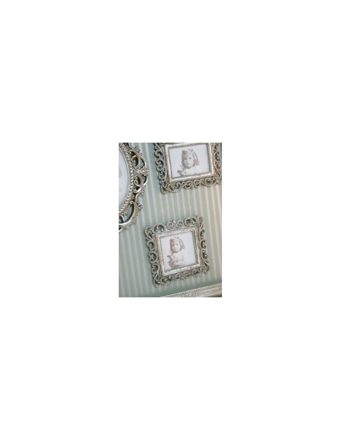 Destaca els records amb el nostre Marc per a Cinc Fotos Individuals, una peça única d'estil romàntic que s'integra a la perfecció amb qualsevol decoració. El marc de fusta pintada amb plata envellida és un regal excepcional per ressaltar moments especials.