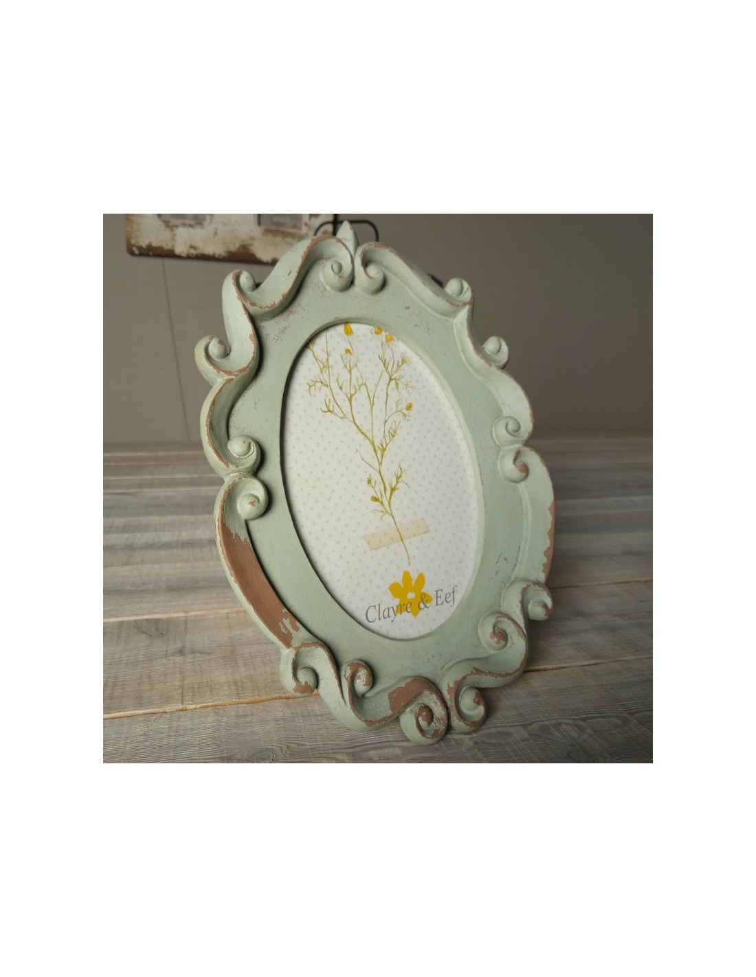 Portarretrat Ovalat per Penjar a Paret i de Sobretaula Estil Verd Vintage per a Fotos de 16x12 cm.Mides: 25x19 cm.