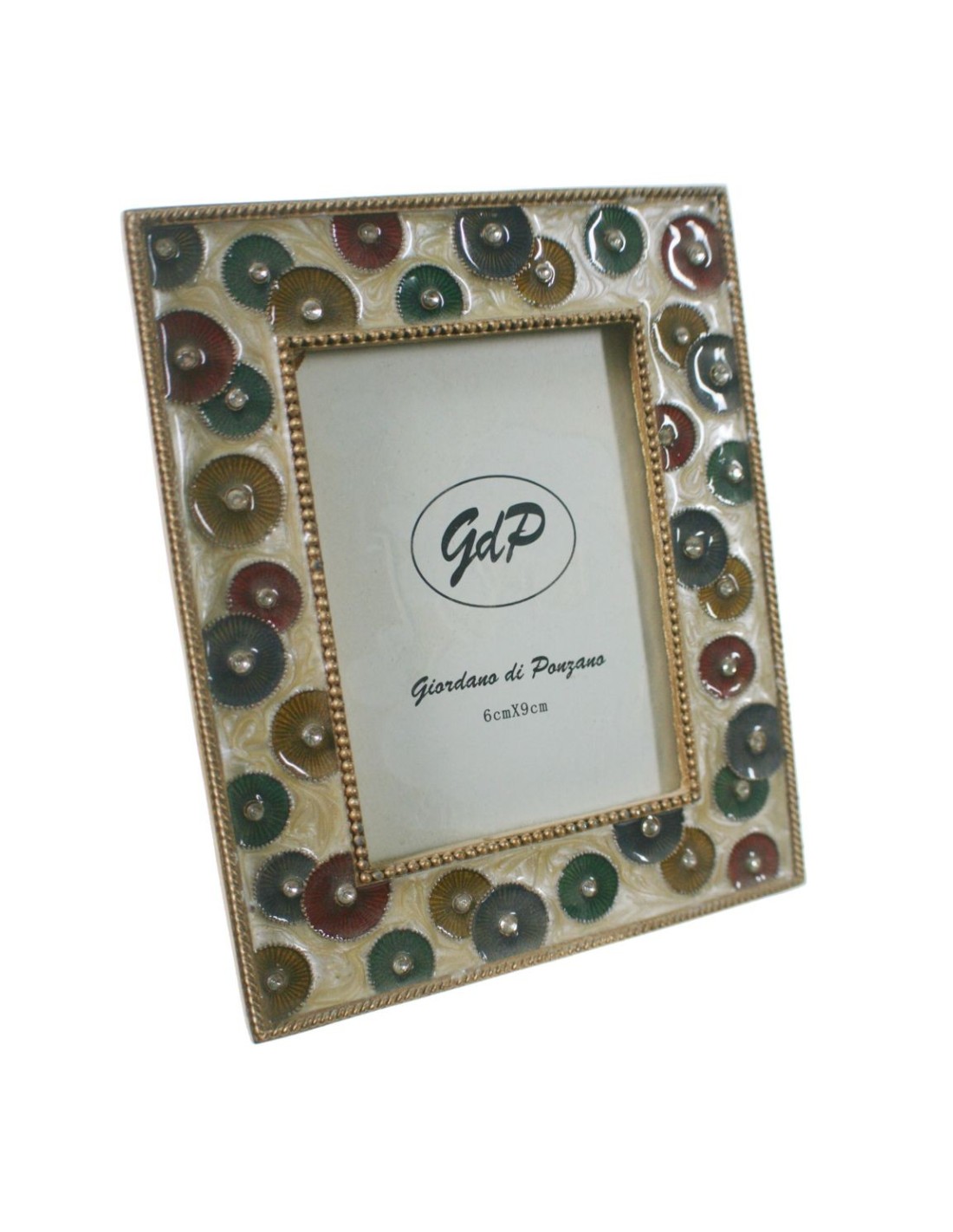 Marc de Fotos Metàl·lic Disseny cercles Acabat Esmalt Vitrificat Decoració Llar. Mides: 13x10 cm.