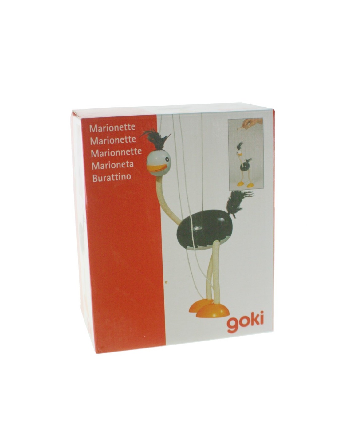 Titella articulada de fusta massissa amb forma avestruz, ple de color i moviment. Un joc clàssic que estimula la creativitat, l'expressió emocional i la motricitat dels més petits.