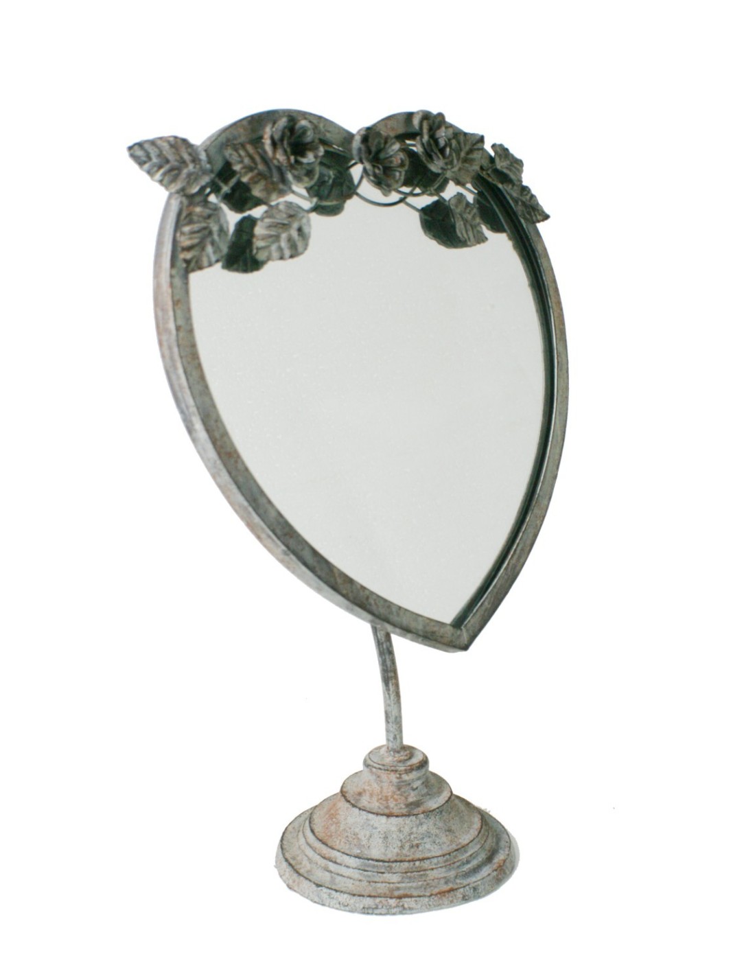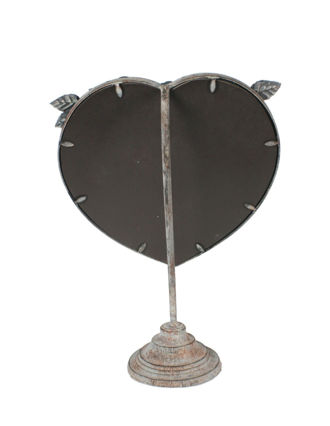 Sorprèn la persona estimada amb aquest mirall per a tocador en forma de cor. Amb aplicacions de flors i un encisador acabat envellit, aquest mirall no només afegeix un toc d'estil vintage, sinó que també es converteix en un regal perfecte per adornar el seu espai personal. Compacte i ple d'encant, és l'elecció ideal per a aquells que somien amb un tocador únic. Fes cada dia un recordatori d'amor i estil amb aquest regal especial!