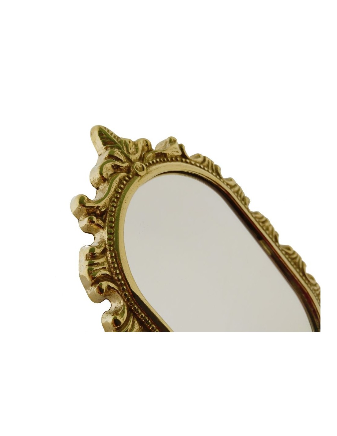 Un mirall de mà per a tocador de llautó, meticulosament elaborat i de la més alta qualitat. Aquest mirall no només afegirà un toc decoratiu al teu espai, sinó que també realçarà la bellesa de la teva còmoda o tocador. Amb un acabat impecable, és lelecció perfecta per regalar. Original i diferent mirall per a tocador, de llautó daurat per decorar l'estada de l'habitació o el vestidor. Un regal molt especial per als amants del maquillatge i del bon gust.
