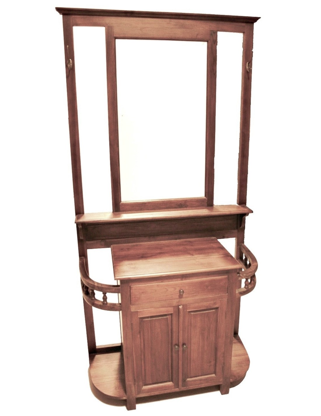 Rebedor de Fusta de Teka Massissa amb Mirall, Calaix i Paraigüer d'Estil Clàssic i Rústic. Mides: 200x43x103 cm.