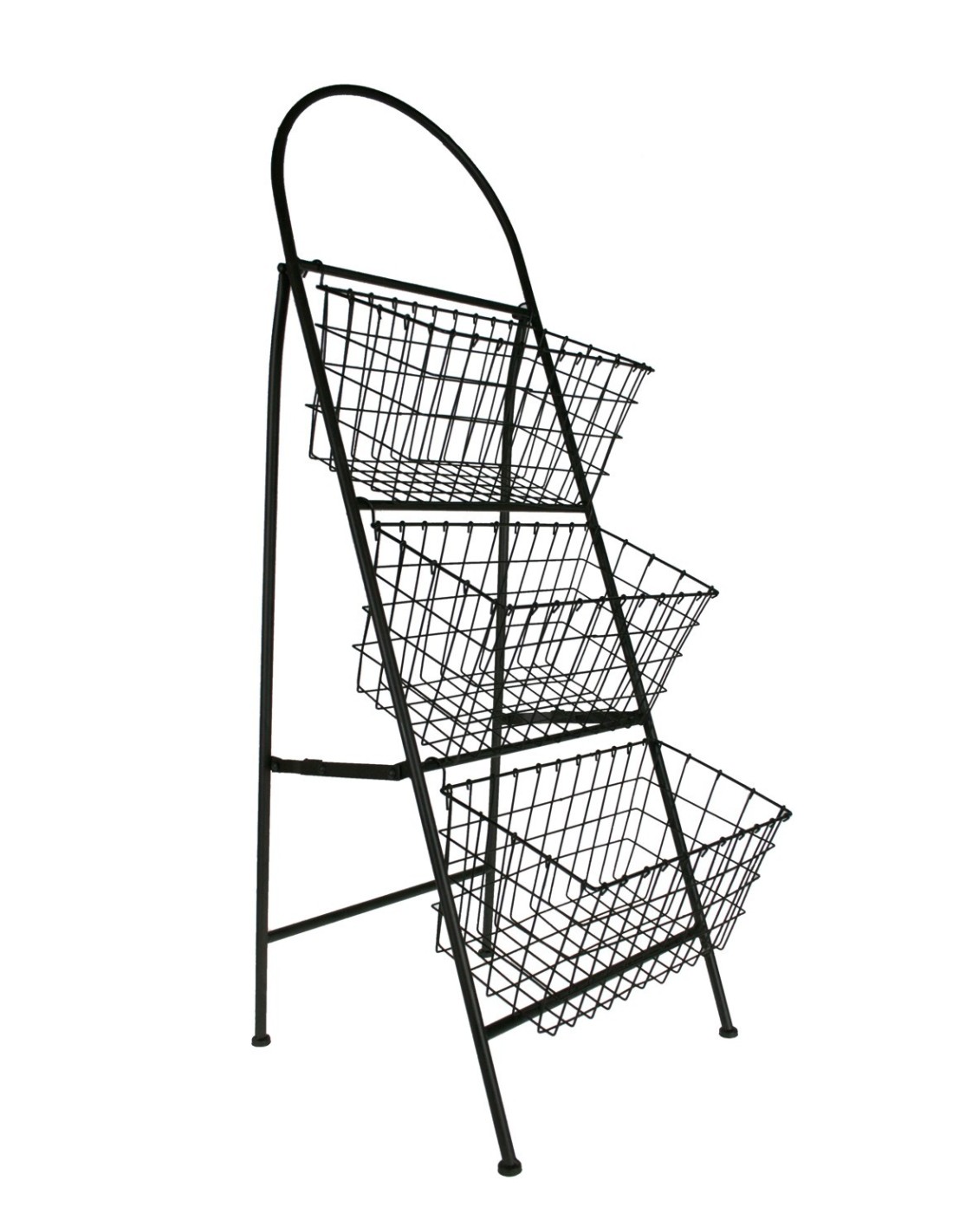 Paneres contenidor de ferro 3 nivells emmagatzematge cuina, rebost, estil nòrdic rústic decoració llar.Mides:110x40x50cm.