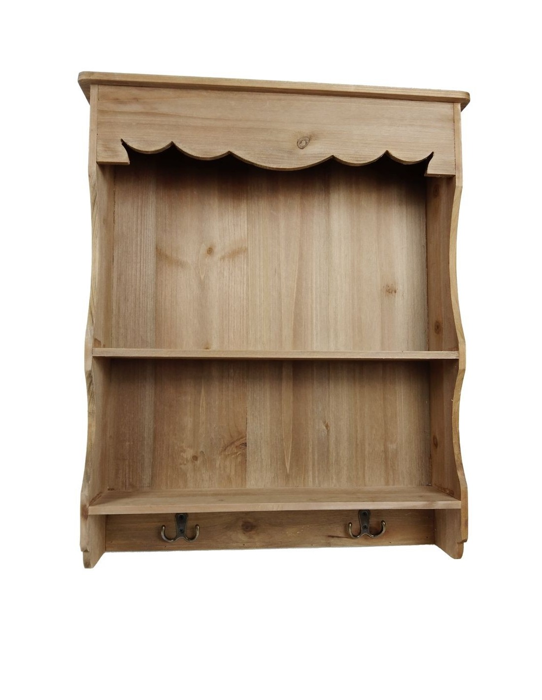 Prestatgeria auxiliar de fusta massissa amb prestatges i penjadors. Ideal per a cuina, entrada o qualsevol racó on necessitis ordre amb encant rústic.