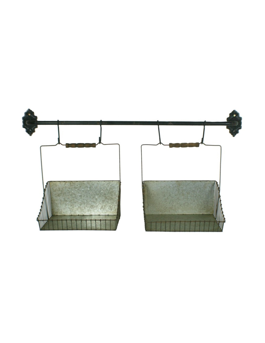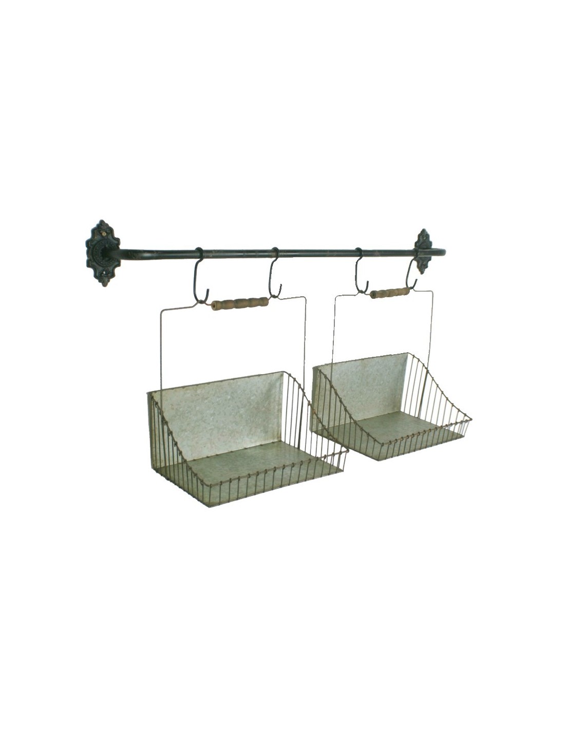 El suport per penjar facilita la instal·lació i optimitza l'espai a la paret. Les dues cistelles permeten organitzar objectes amb estil, sigui a casa o en un entorn comercial com a suport d'exposició.