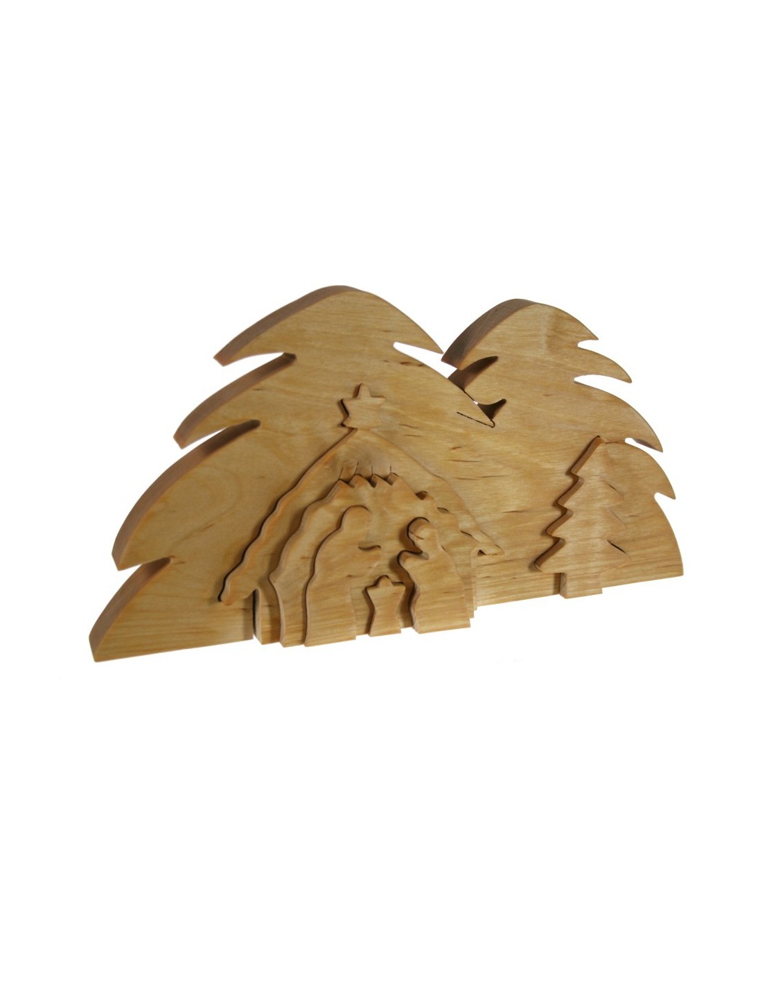 Betlem tallat en 3D elaborat amb fusta natural decoració nadalenca d'estil nòrdic. Mides: 14x27x3 cm.