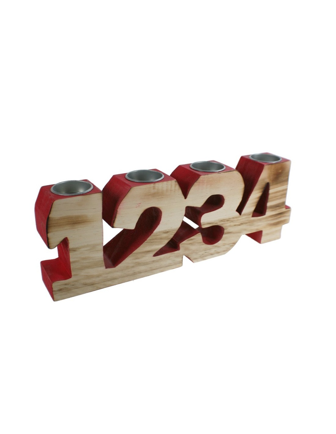 Un, dos, tres, quatre...i ja hi ha el temps d'advent davant de la nostra porta. Aquest suport per espelmes en fusta està fet de quatre números serrats junts i pintats en part en vermell. Així ofereix una resplendor agradable. Deixa que la màgia d'aquestes festes entri a casa teva amb les espelmes. Mides: 12x35x5 cm.