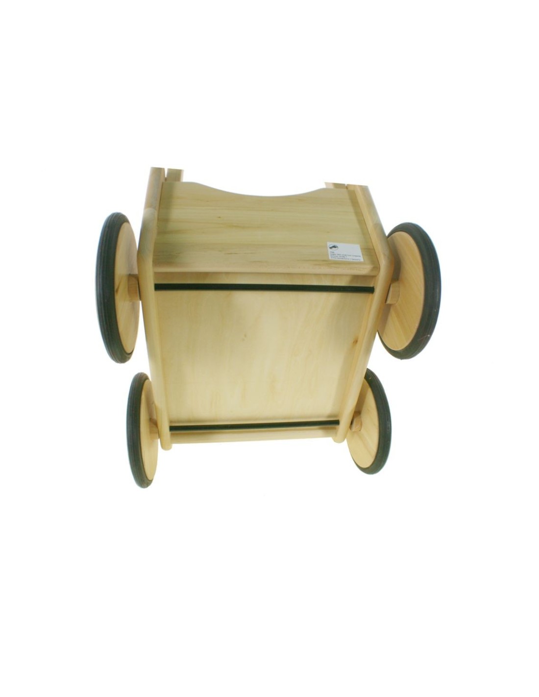 Cotxet de nines de fusta natural amb formes arrodonides, resistent i amb rodes de goma per a un funcionament silenciós. Per donar una volta amb el teu ninot de nadó. El cotxet té incorporat roba de llit color blau estampat i és un cotxet d'admirar.