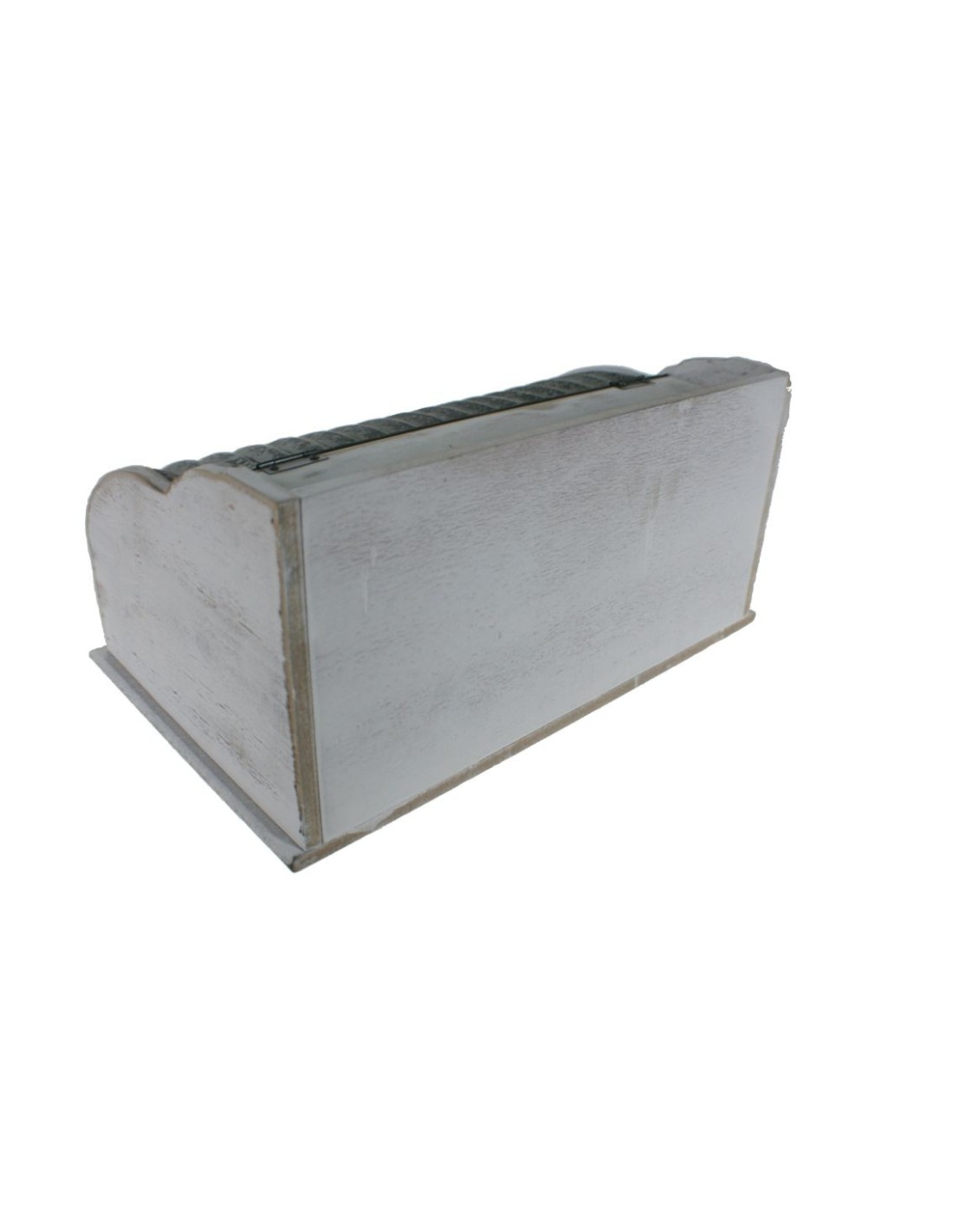 Panera de fusta massissa decapada de color blanc i tapa de zinc per guardar el pa. Article no hermètic amb gran valor decoratiu i funcional, és una meravellosa idea de regal per a familiars o amics. Una caixa original d'estil vintage per al teu pa i pastissos. Mesures: 19x40x25 cm.