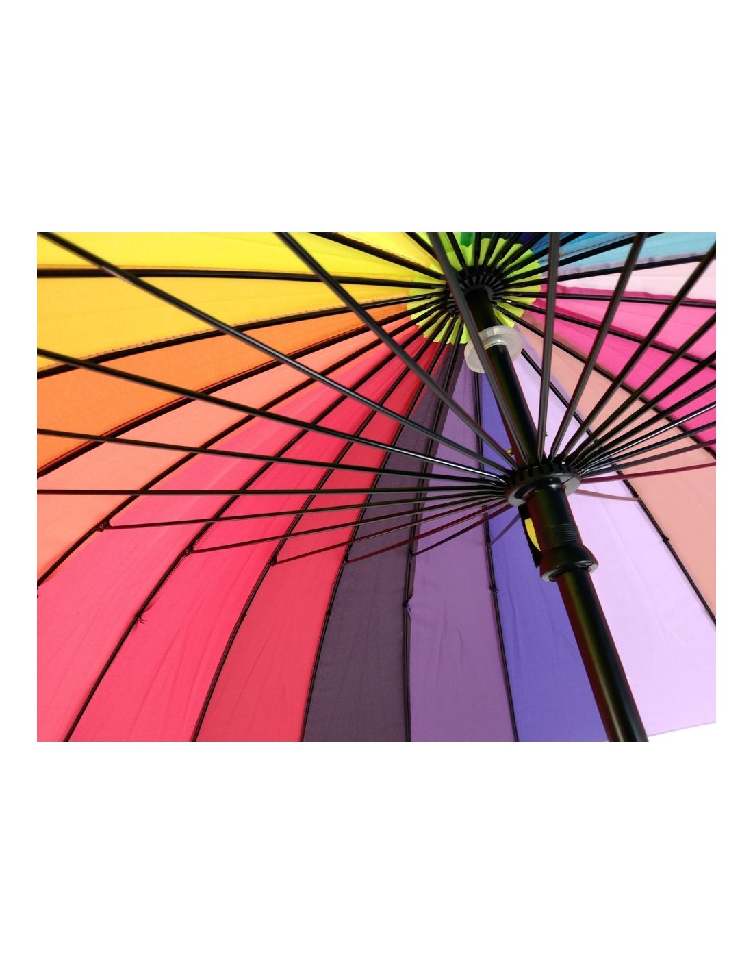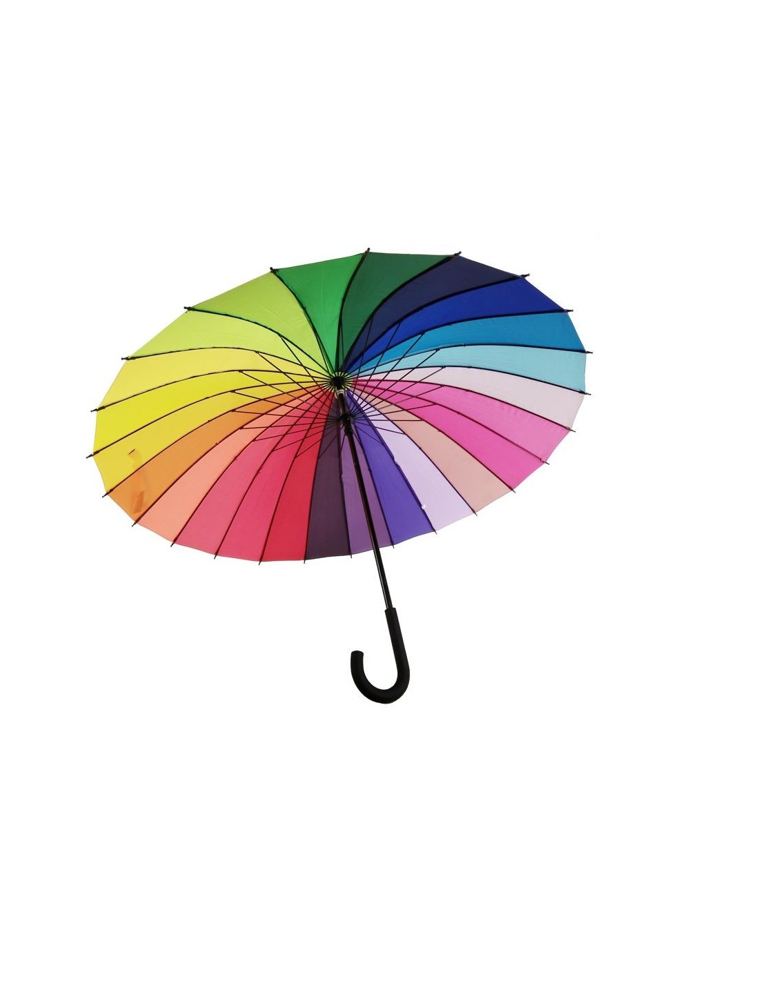 Bonic paraigua de multicolor i supergran. Amb aquest paraigua aniràs a la moda i et protegiràs de la pluja i alhora donaràs un toc d'alegria als dies que estan ennuvolats i plujosos. Ideal per anar de passeig i resguardar-te del sol. Aquest paraigua conté 24 varetes.