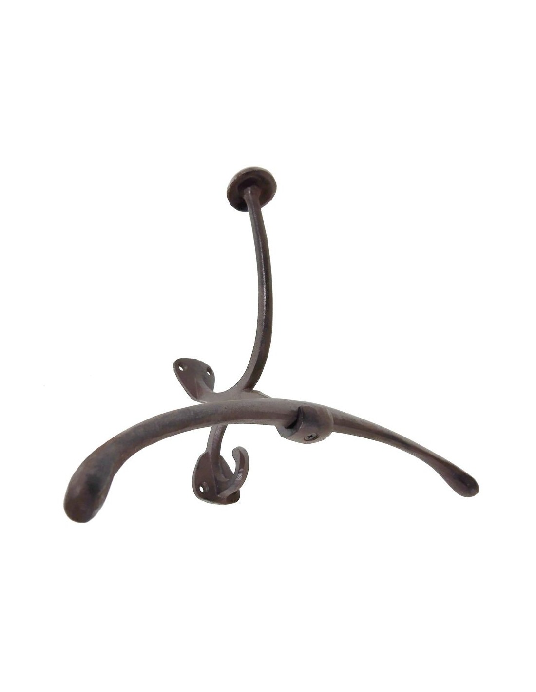 Penjador de paret individual de ferro colat tipus galant, tres ganxos, decoració llar. Mides: 27x33x14 cm.