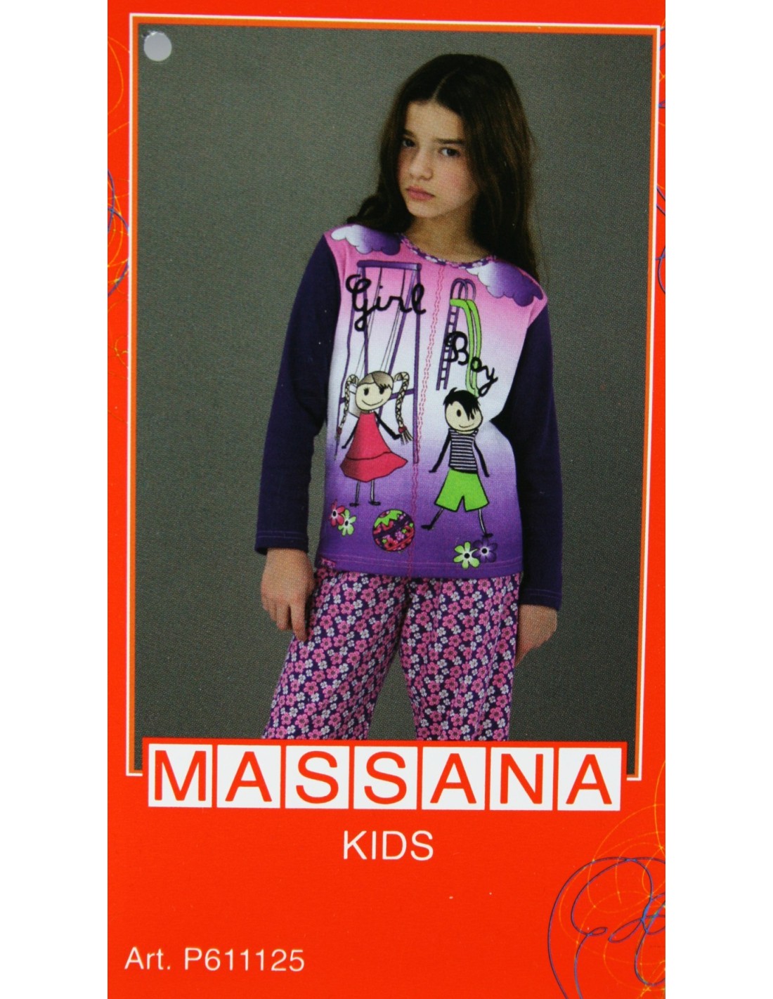 Pijama per nena Massana d'hivern color morat amb dibuix nens. talla 16