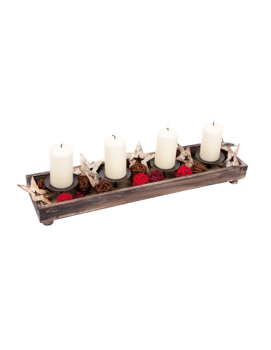 Portavelles de Nadal de fusta natural per a 4 espelmes portaveles de centre de taula decoració Nadalenca. Mesures: 8x53x14 cm.