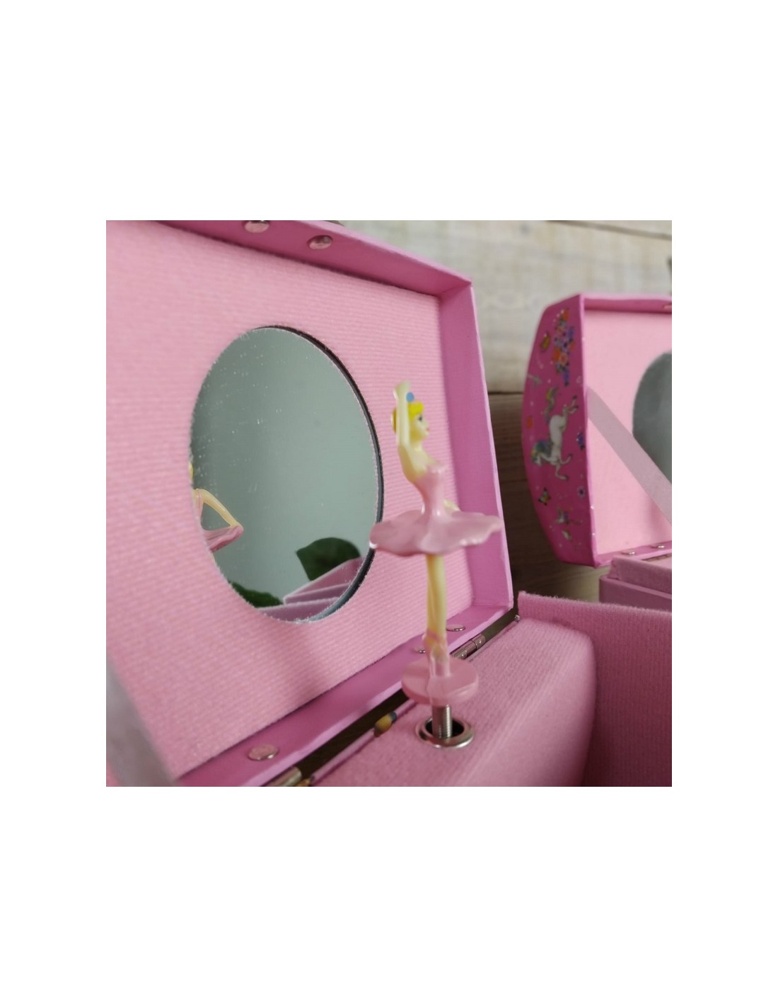 Caixa Musical Infantil Joier Color Rosa amb Ballarina Girando i Mirall. Mides: 10x16 cm.