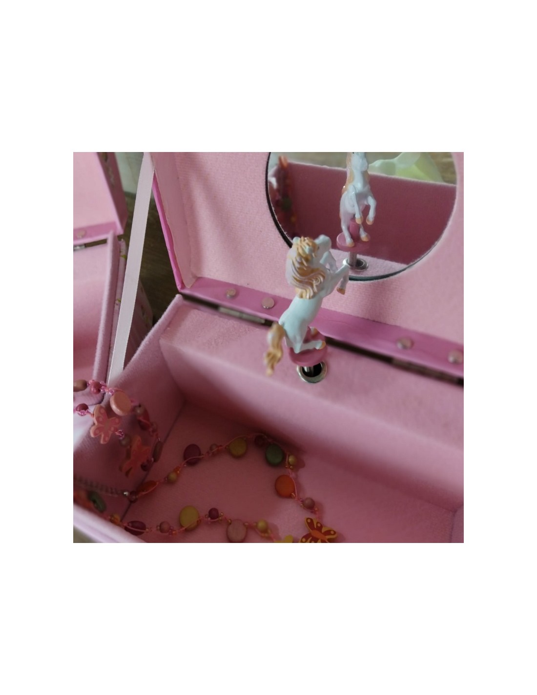 Caixa Musical Infantil Joier Color Rosa amb Caballito Girando i Mirall. Mides: 10x16 cm.