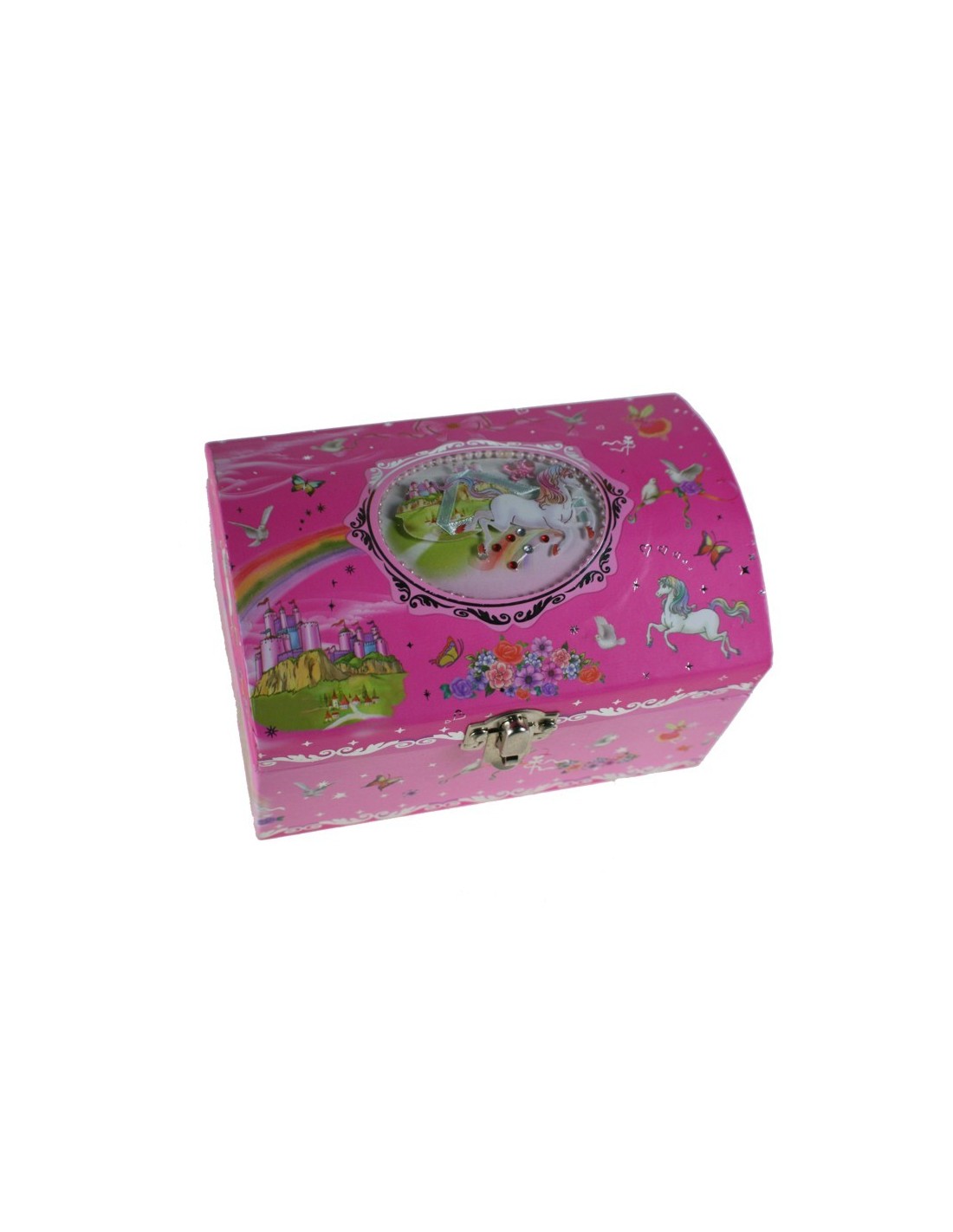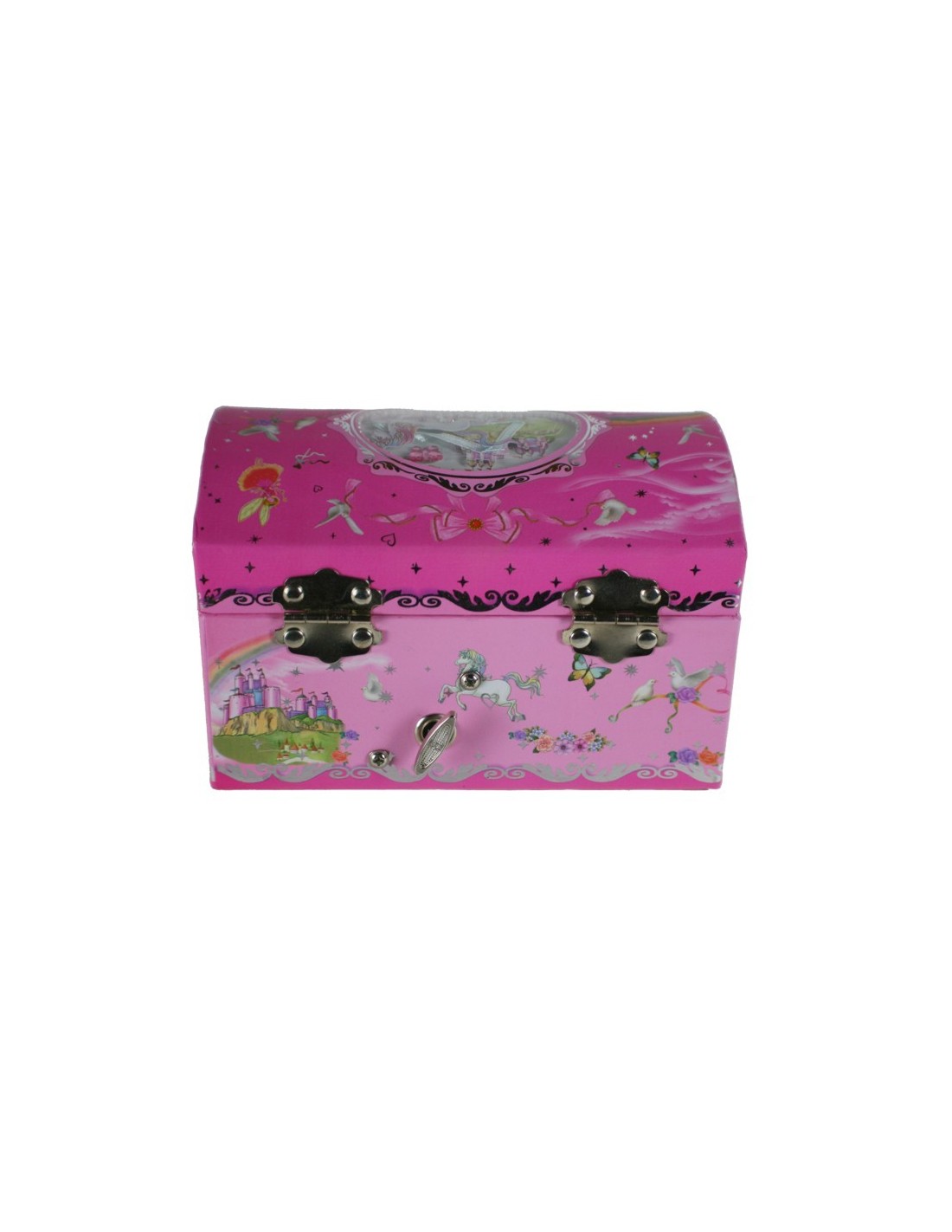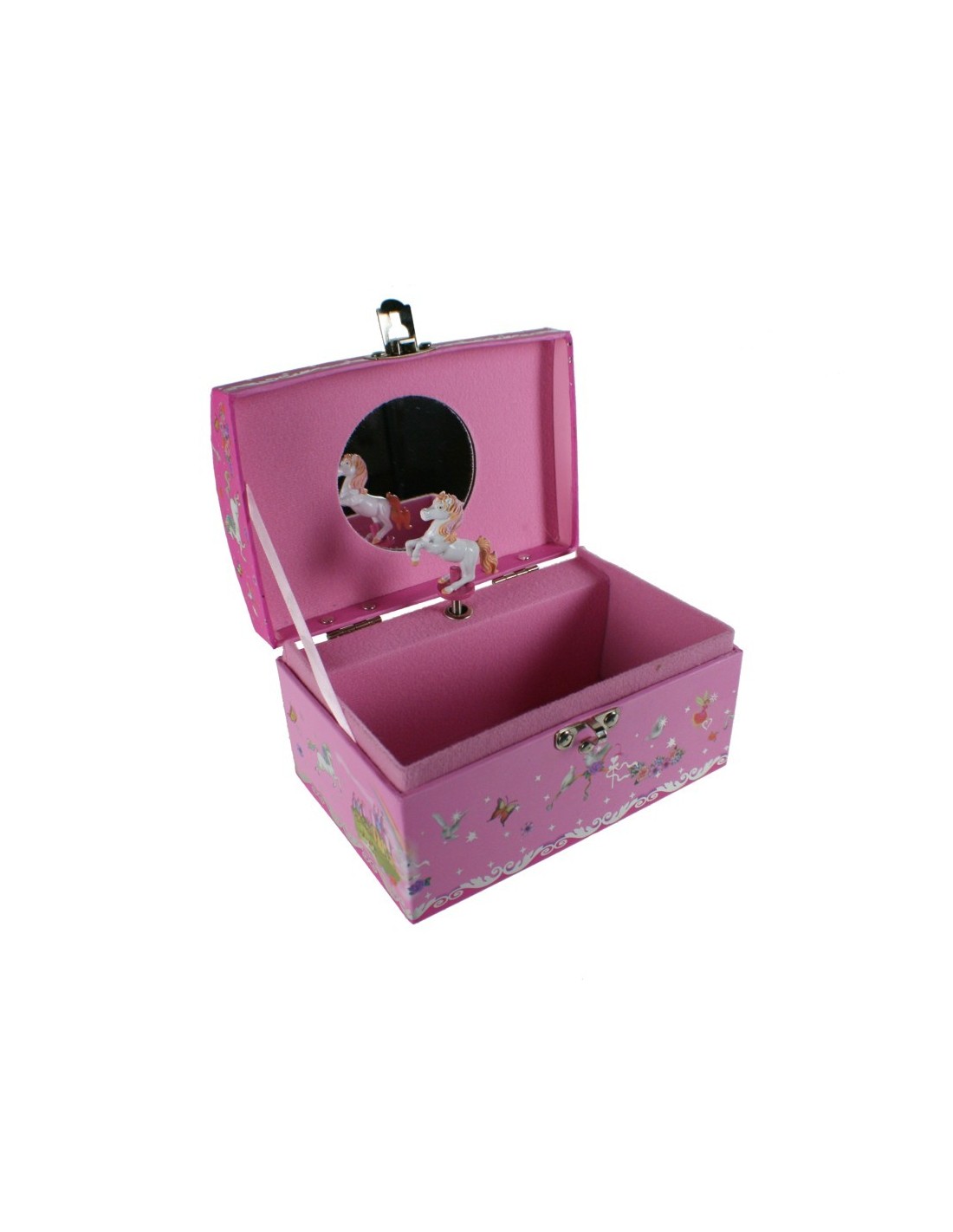 Un racó de màgia i música! Aquesta preciosa caixa de música es converteix en el refugi perfecte per als petits objectes que tant ens importen. Amb un delicat revestiment de setí i un cavallet giratori que balla al ritme de la famosa melodia de "El llac dels cignes", és un accessori encantador que encanta tant a nens com a adults.