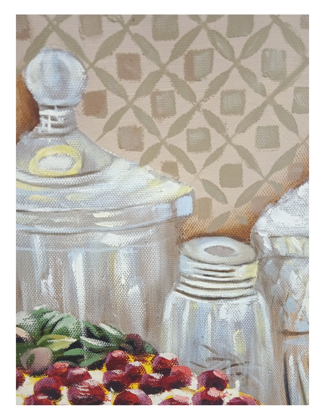 Quadre estil bodegó per a decoració i ambientar l'estada de casa teva. Quadre petit pintat sobre tela a l'oli. Està de moda que no necessitis cap marc, aquest petit bodegó el pots combinar amb altres o posar-lo a un racó de la teva cuina.