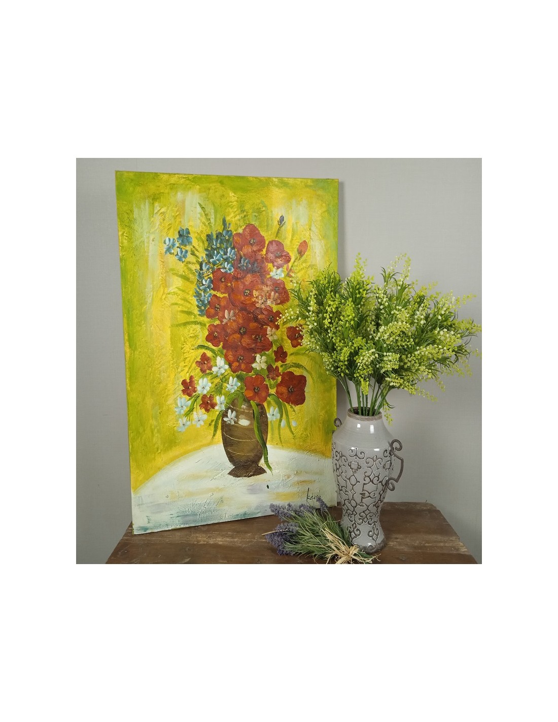 Quadre pintat a l'oli amb motius florals. Mesures: 87x61 cm.