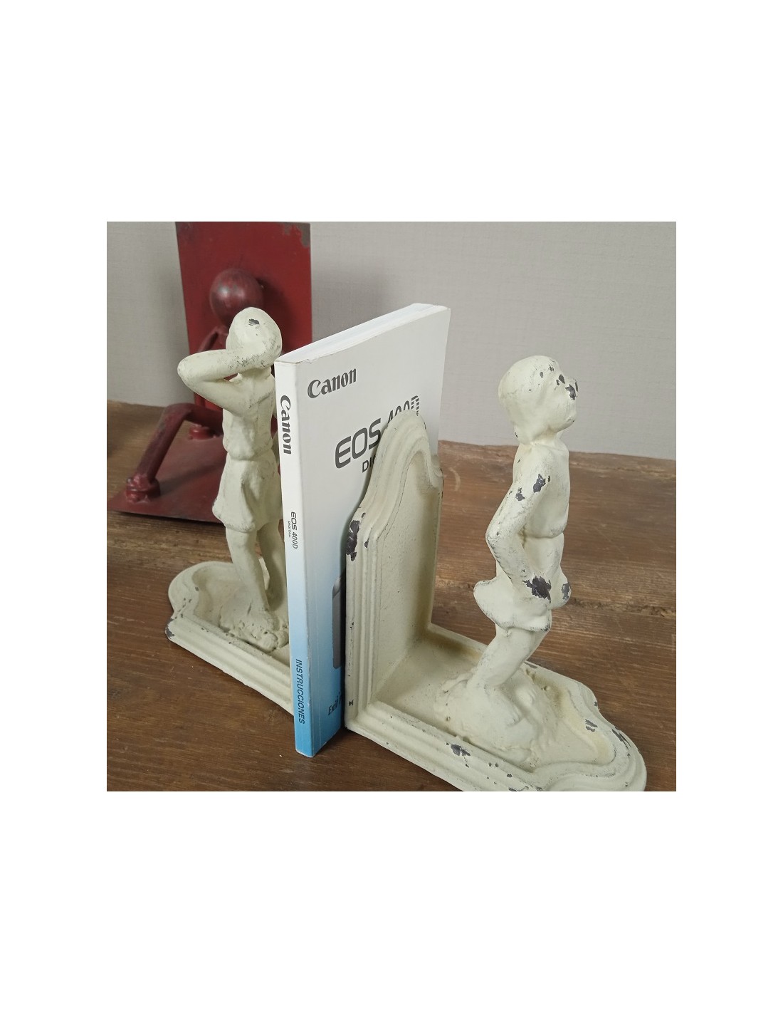 Joc de dos subjectallibres de ferro fos amb figura. Mesures: 16x12x8 cm.