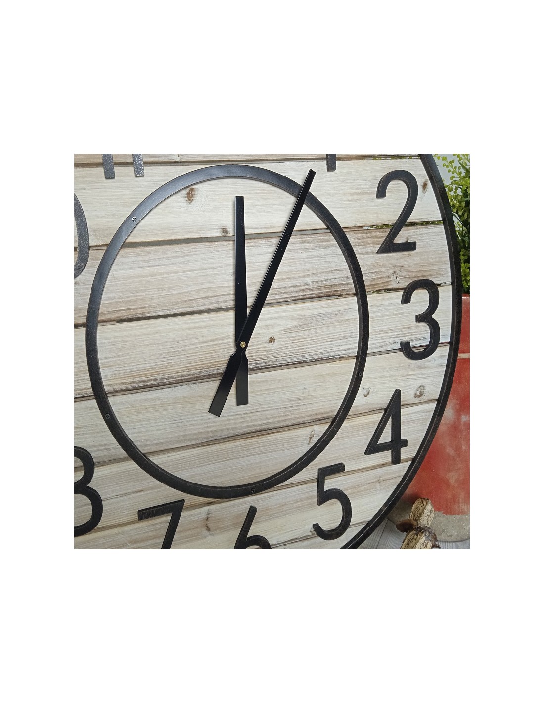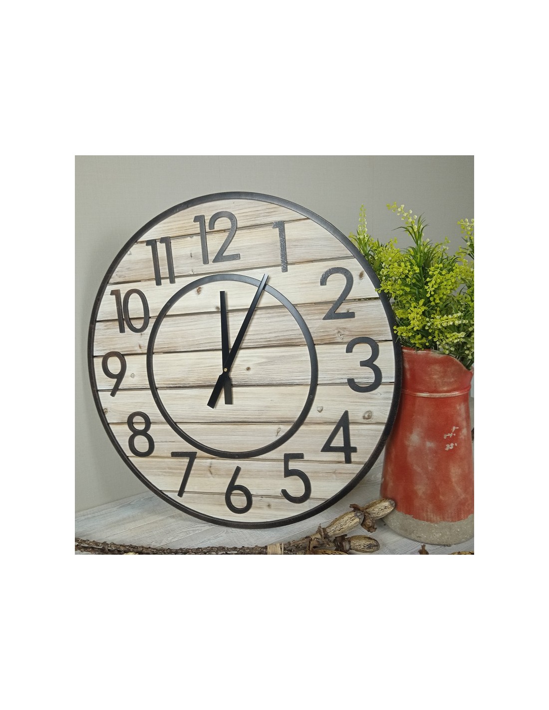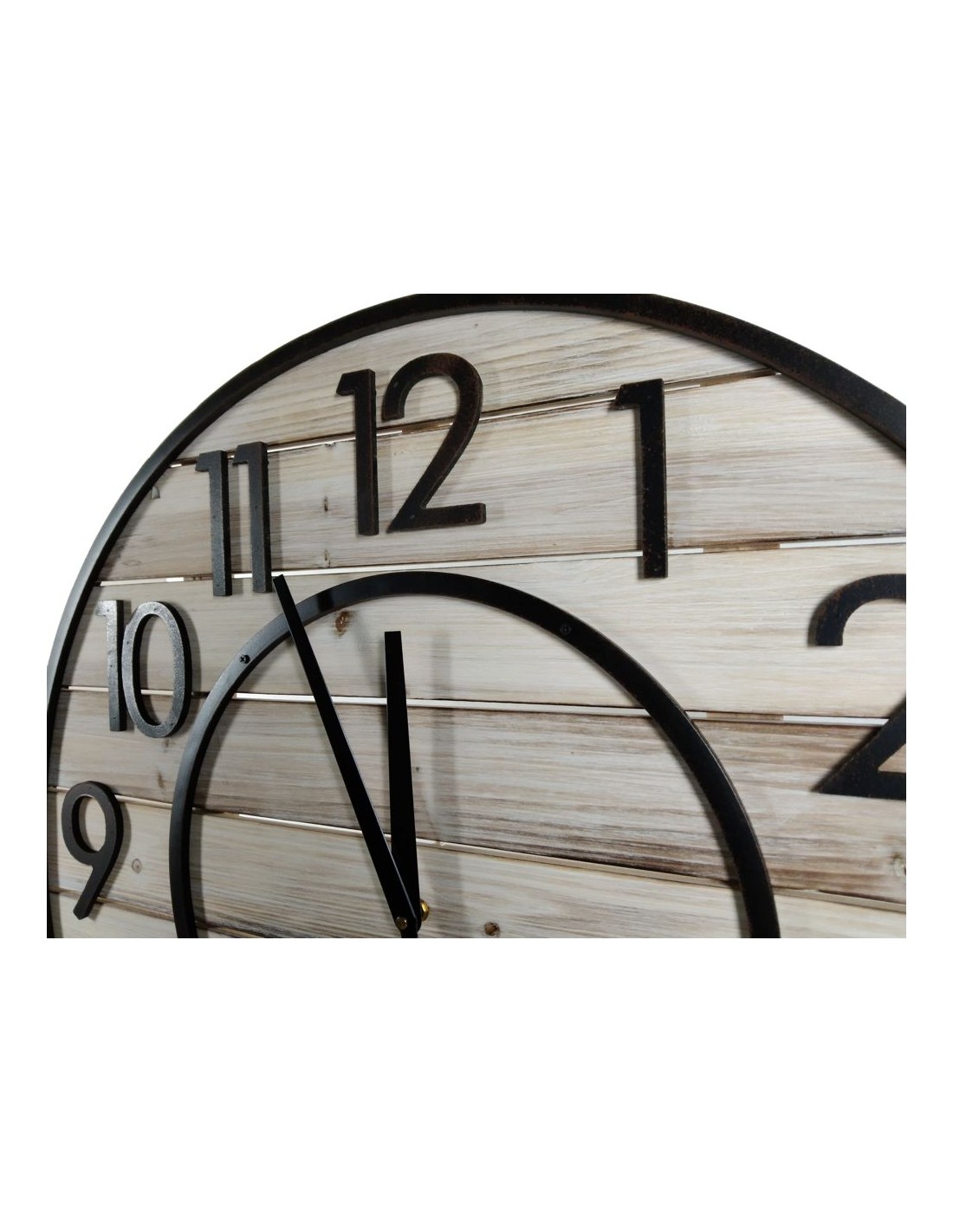 Rellotge de Paret Rodó Metàl·lic i Fusta Massissa amb Números Grans Decoratiu estil Vintage: Mides: Ø 70 cm.
