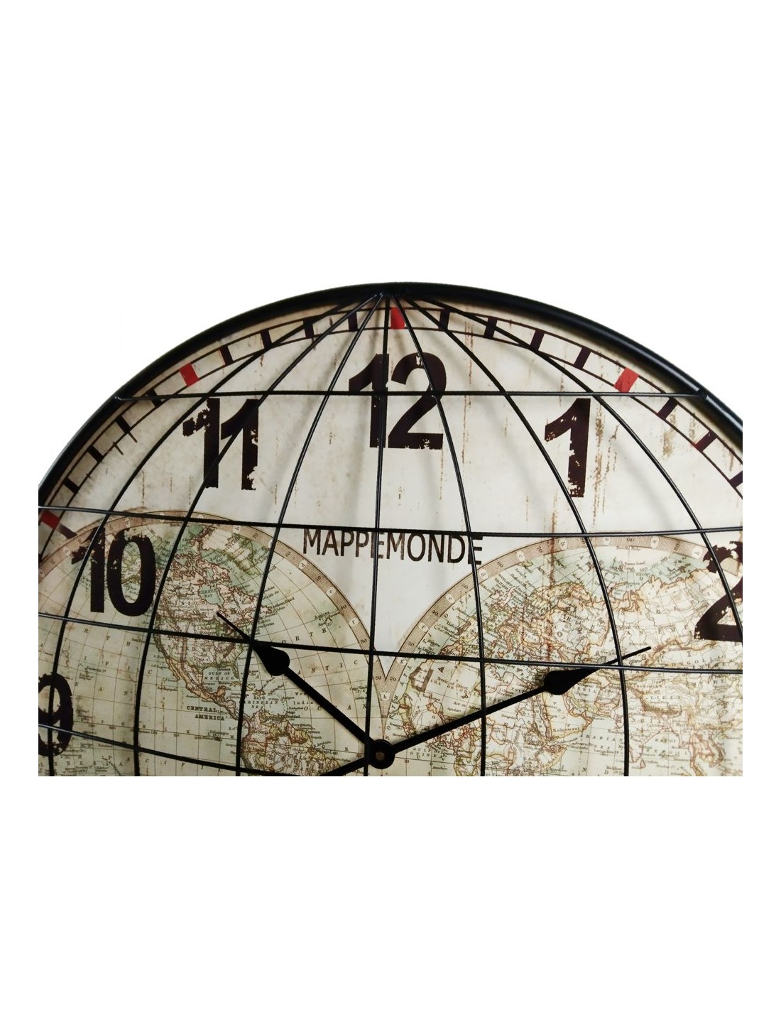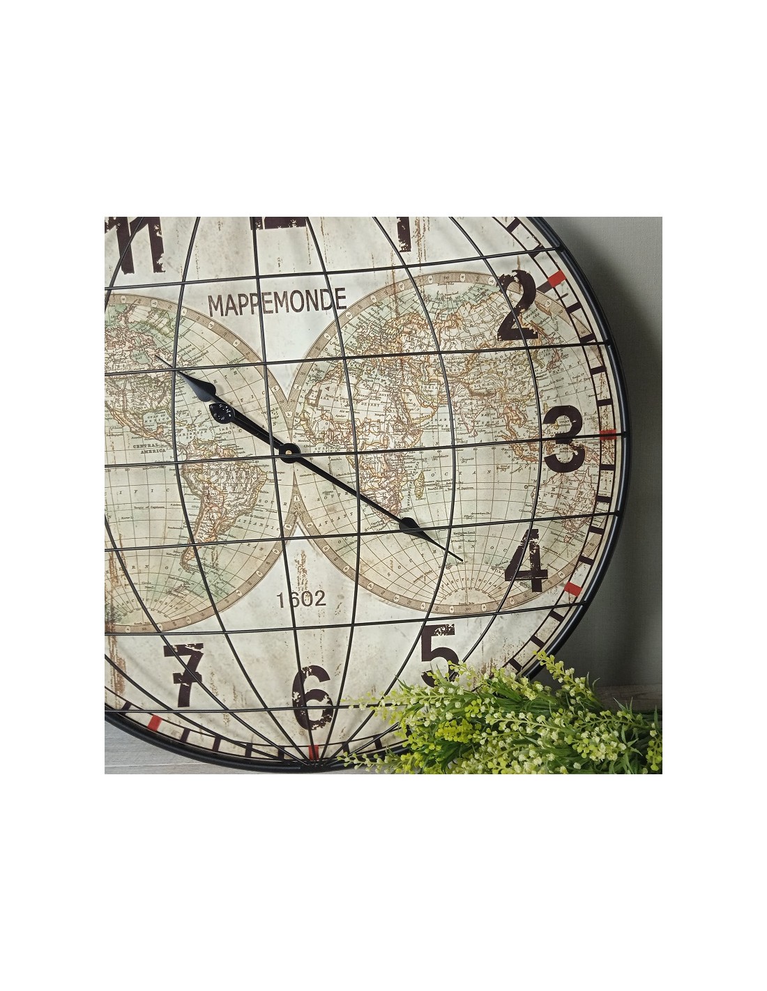 Afegeix un toc de distinció a casa teva amb aquest gran rellotge de paret decoratiu. Aquest rellotge de metall presenta números grans i un disseny únic amb un dibuix de mapamundi i una reixeta bombada. És la peça perfecta per afegir personalitat a qualsevol habitació i per mantenir el temps amb estil.