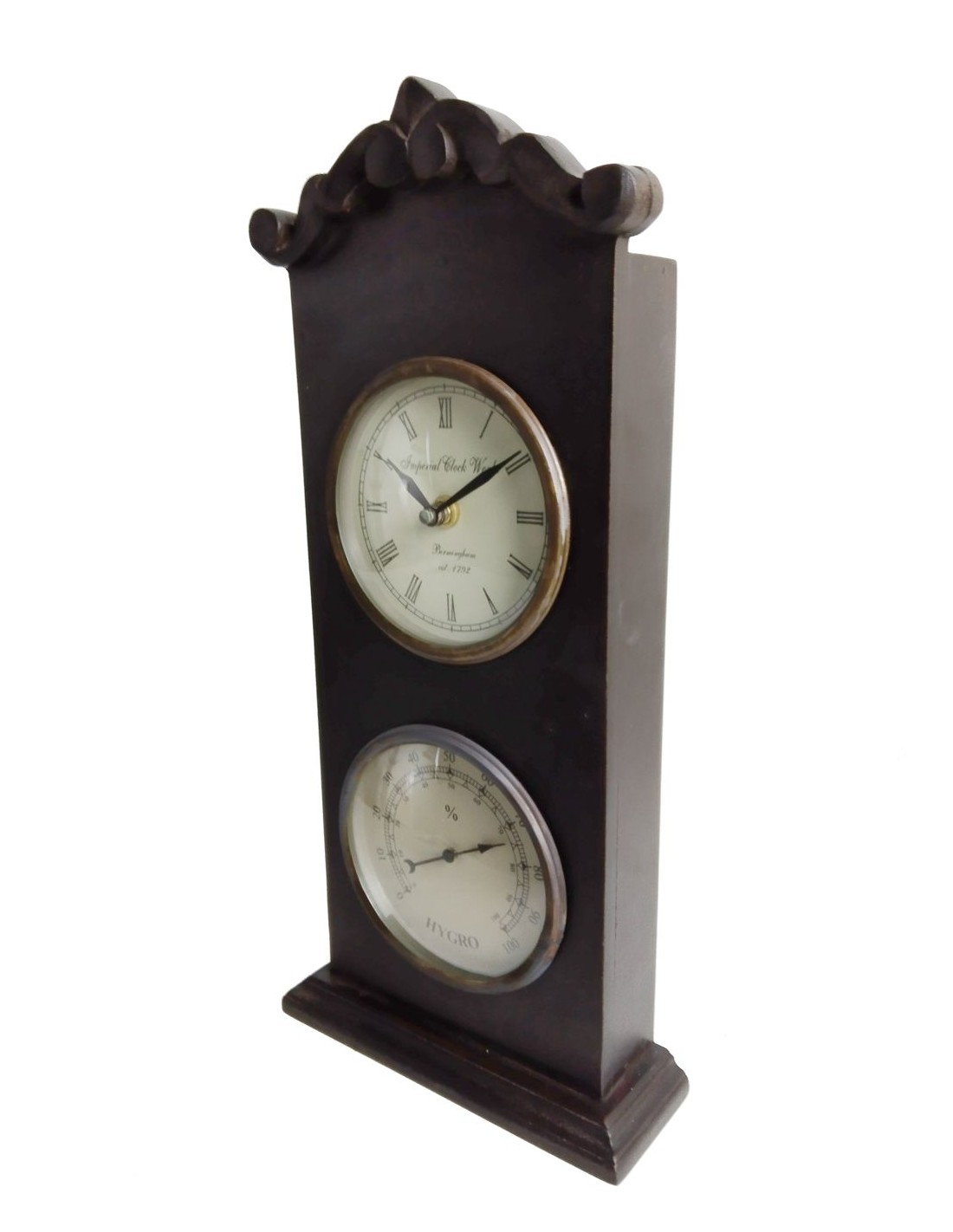 Rellotge paret i sobretaula de fusta de dues esferes amb higròmetre decoració per a la llar estil rústic. Mesures: 36x17x6 cm.