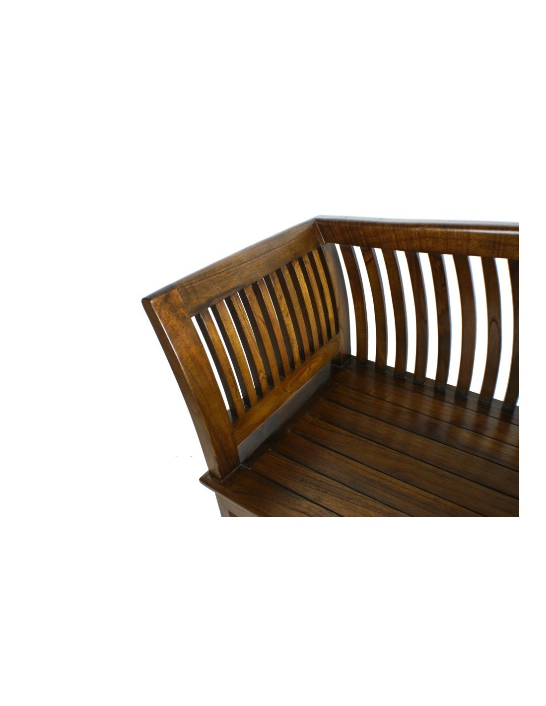 Banc de fusta massissa de mindi amb to roure, amb disseny senzill i línies elegants. Ideal per decorar qualsevol estança de la llar amb moble auxiliar, pràctic i amb estil. Perfecte per a peus de llit, rebedors o zones de descans.