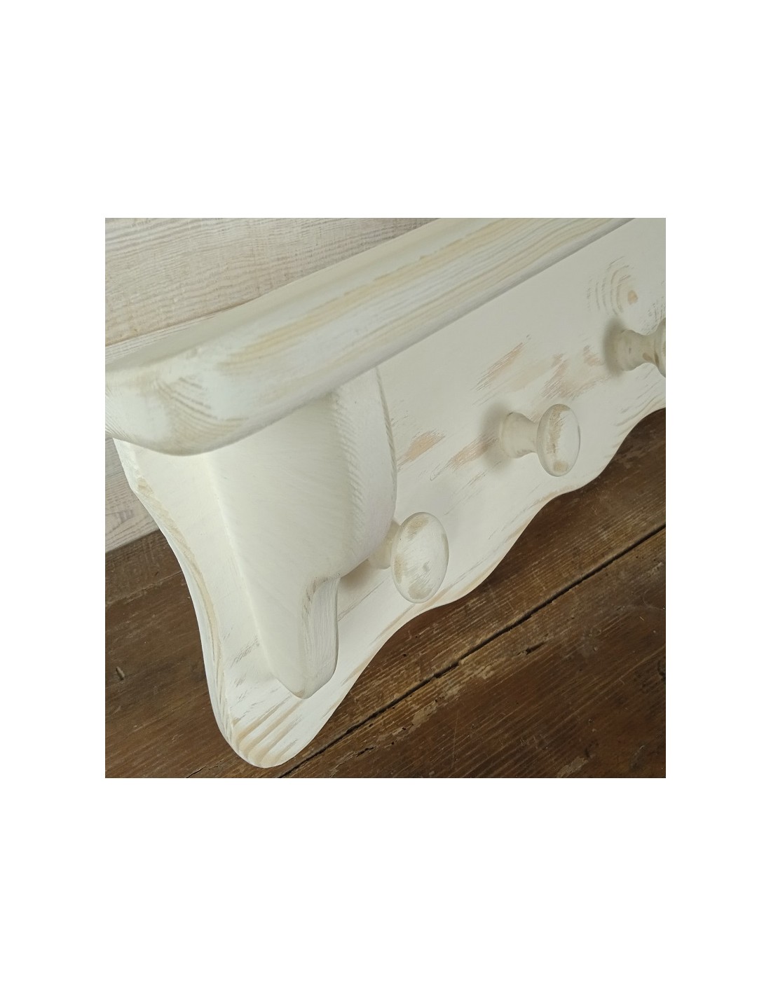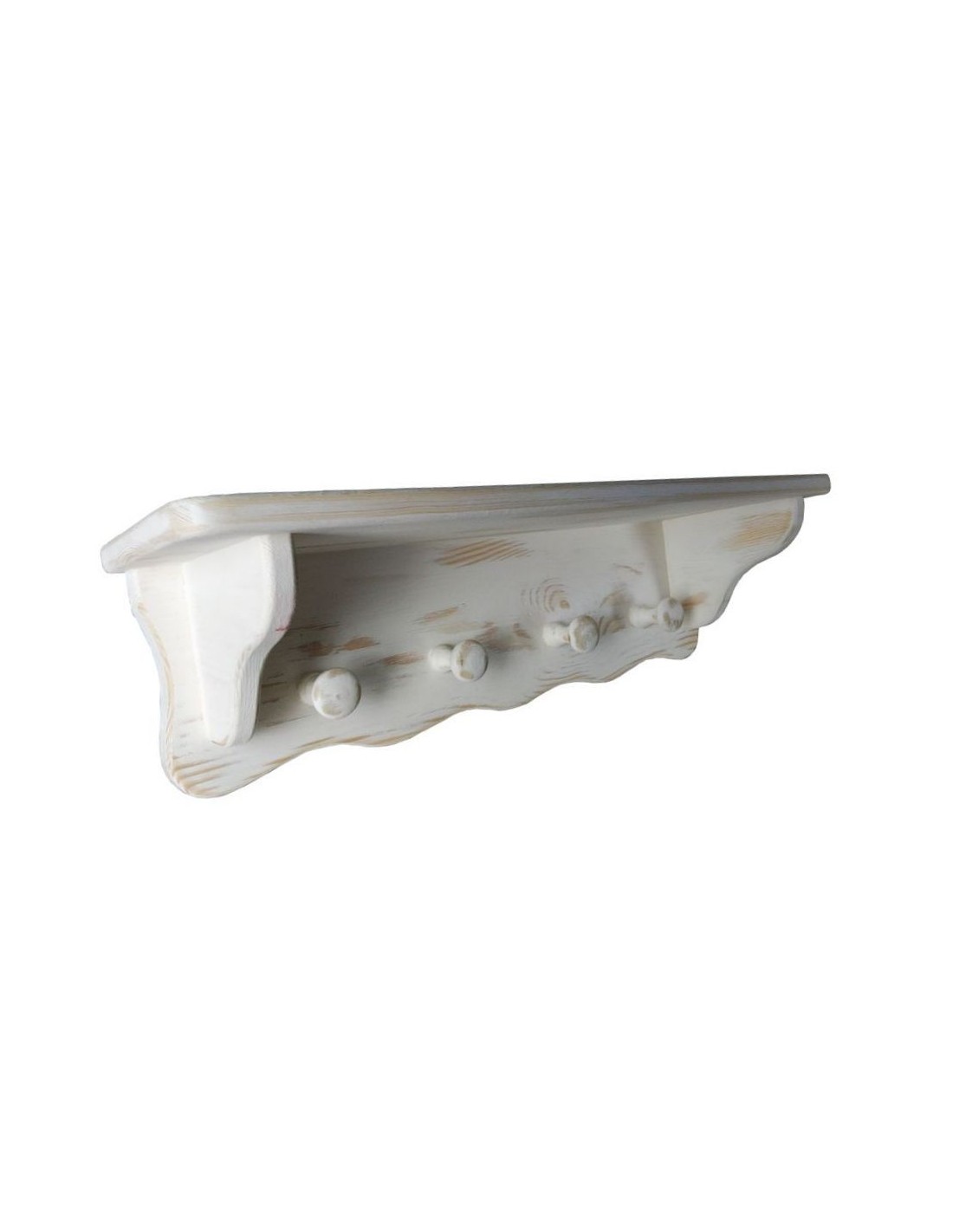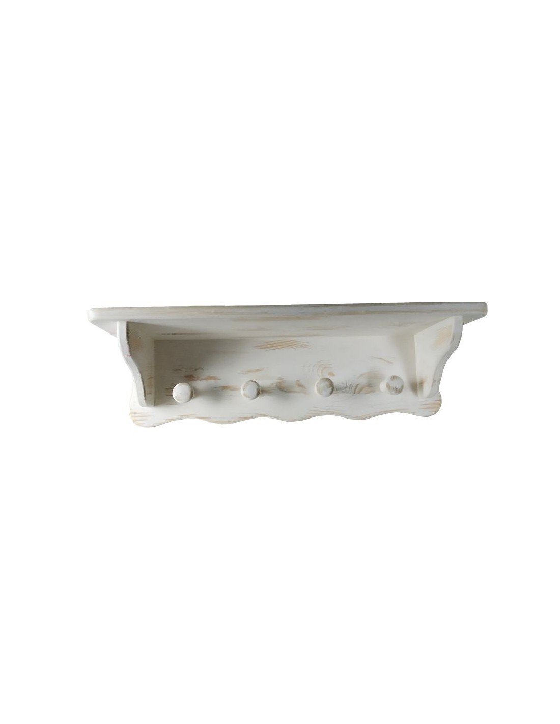Penjador amb barret de quatre penjadors per penjar la paret. Estructura de fusta de color blanc patinat envellit estil rústic. Els penja-robes són ideals per estalviar espai i poder alhora decorar el vostre rebedor o l'estada d'una habitació.