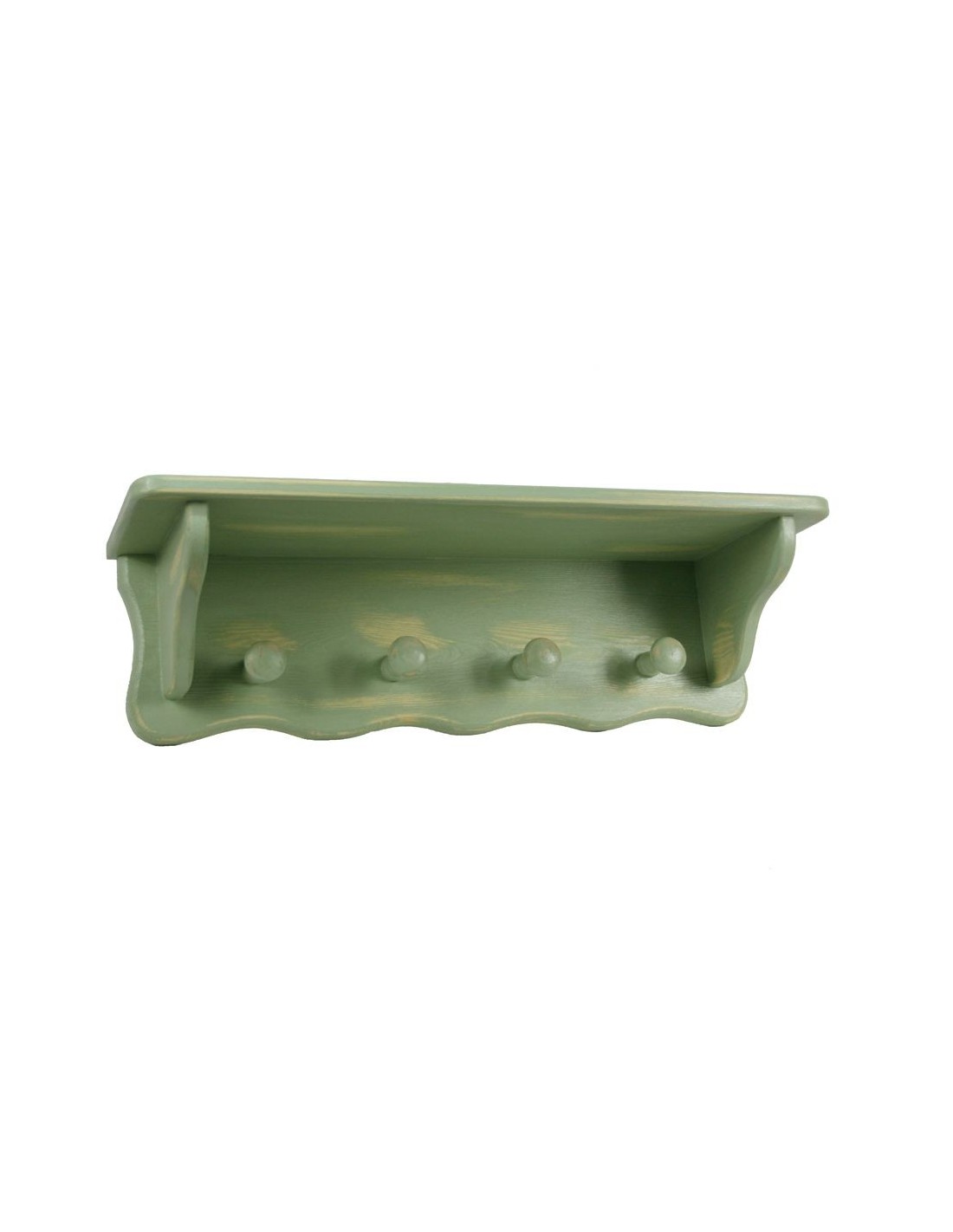 Penjador penjador amb barreter de quatre penjadors per penjar la paret. Estructura de fusta en color verd patinat envellit estil rústic. Els penjadors són ideals per estalviar espai i poder alhora decorar la teva rebedor o l'estada d'una habitació.