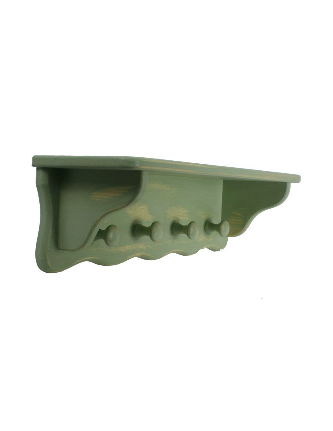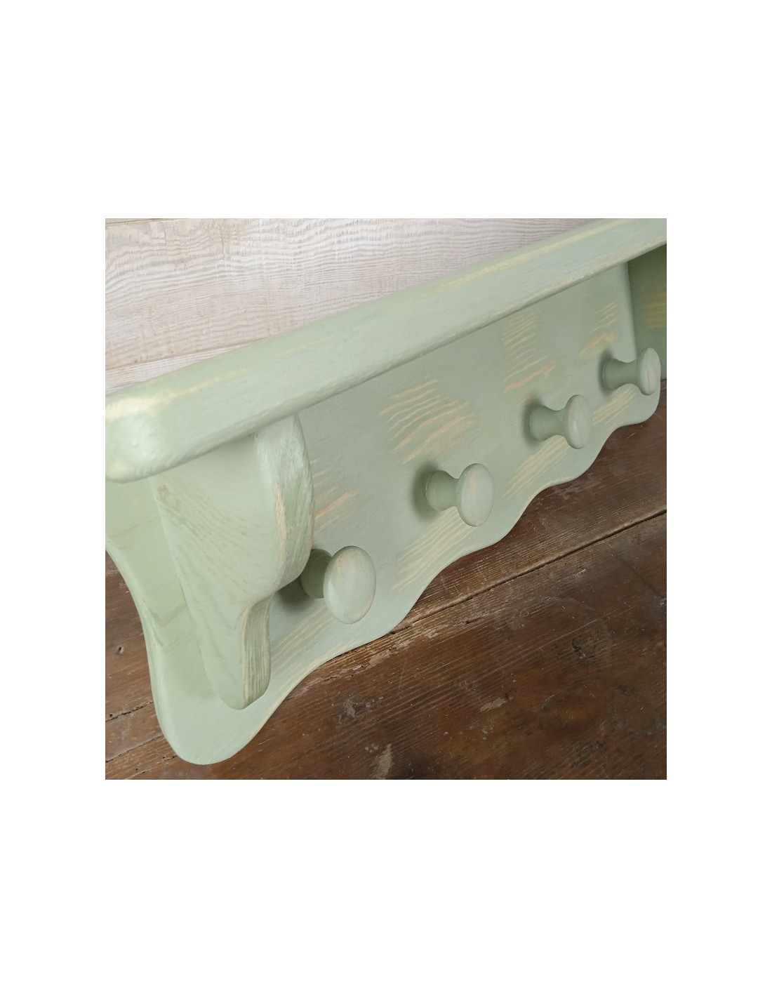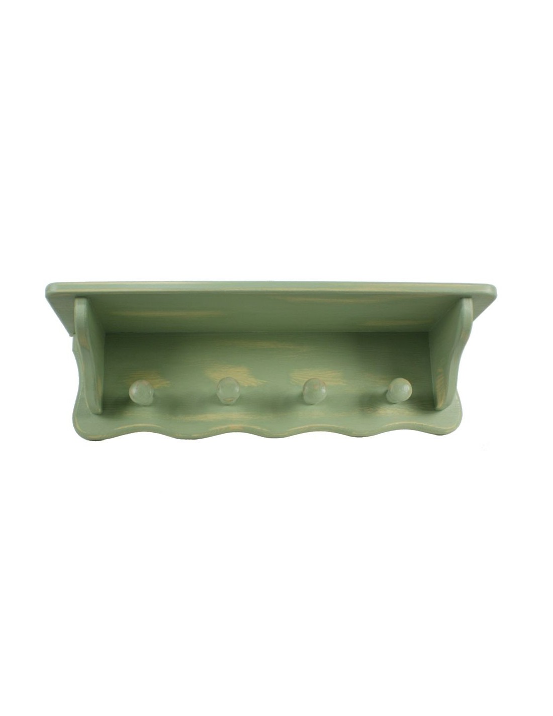 Penjador de paret amb barreter de quatre penjadors per penjar de fusta color verd estil rustico per a decorar habitació i rebedor