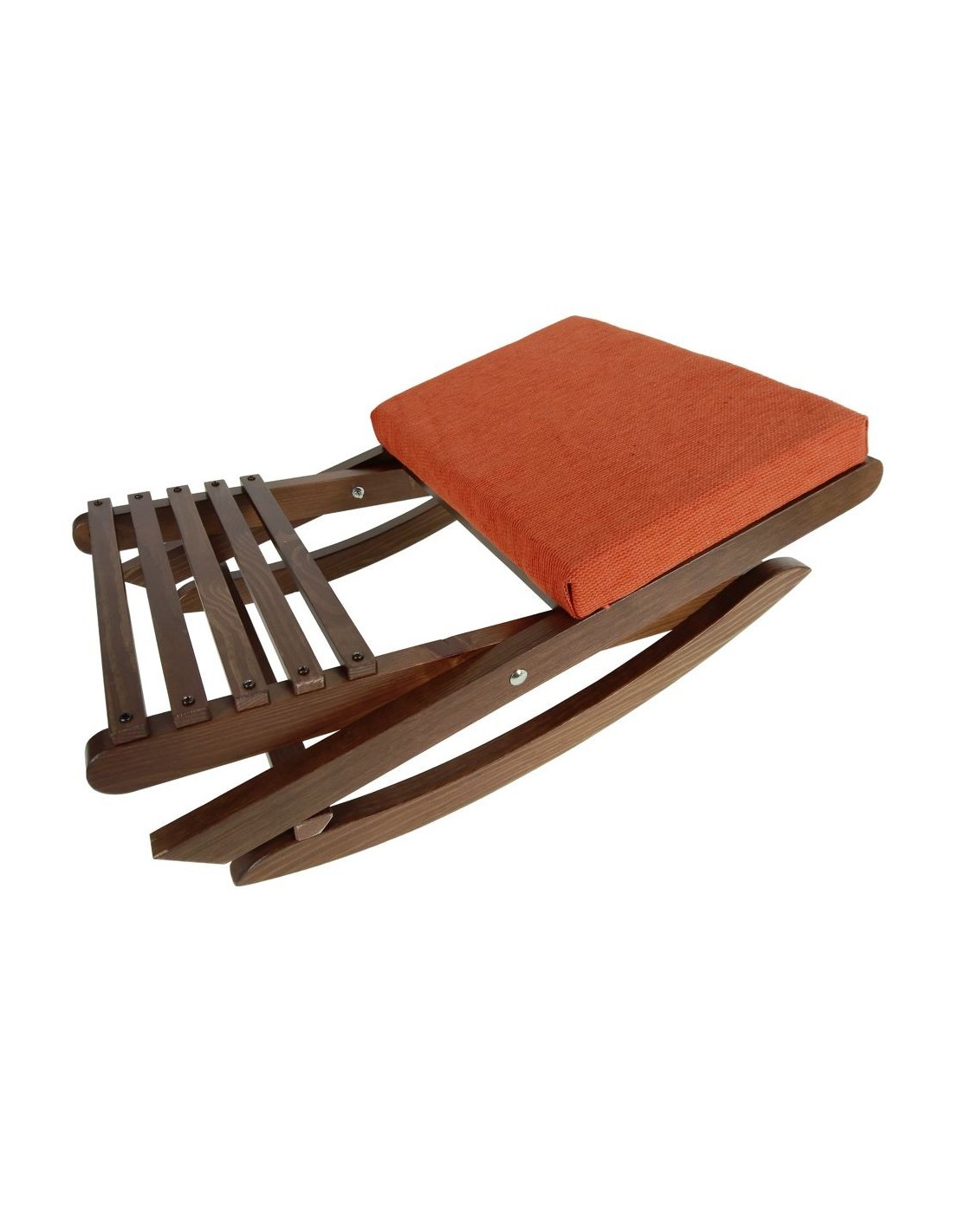 Reposapeus Plegable de Fusta Macissa de Base Ampla Color Noguera i Encoixinat Taronja Moble Auxiliar. Mides: 39x58x37 cm.