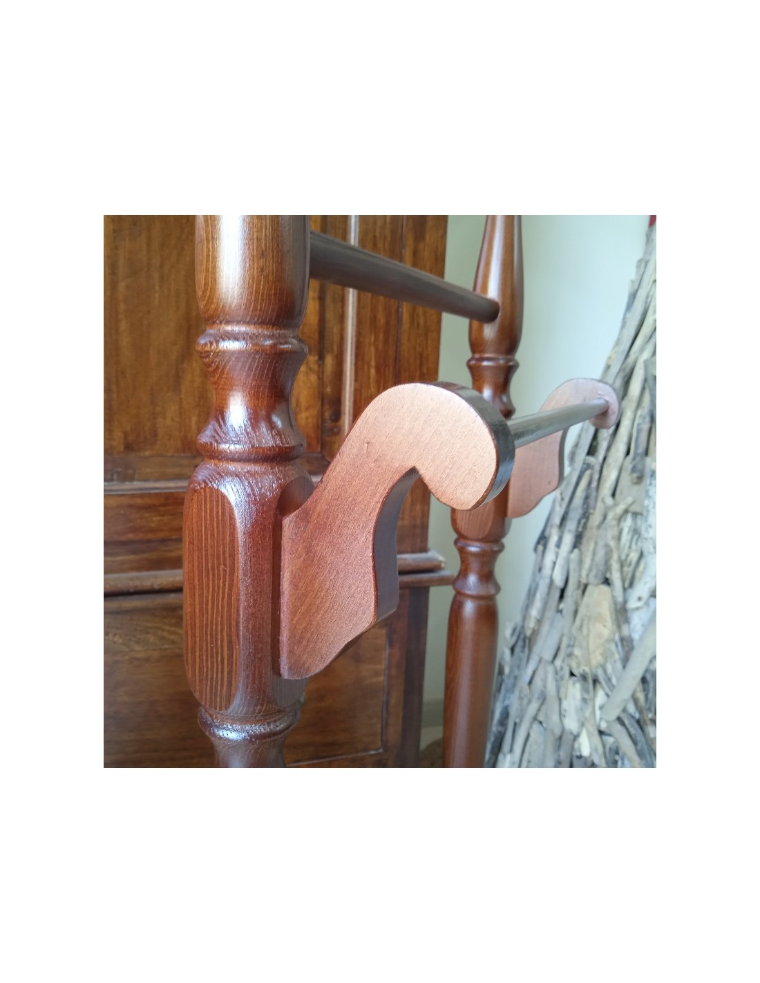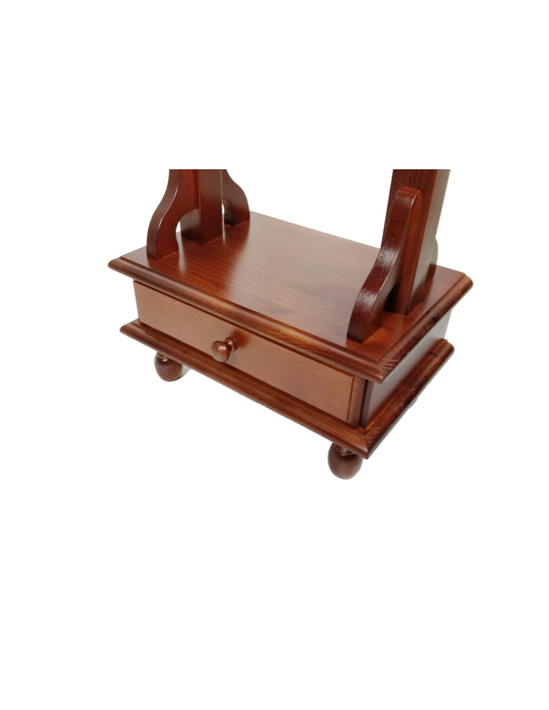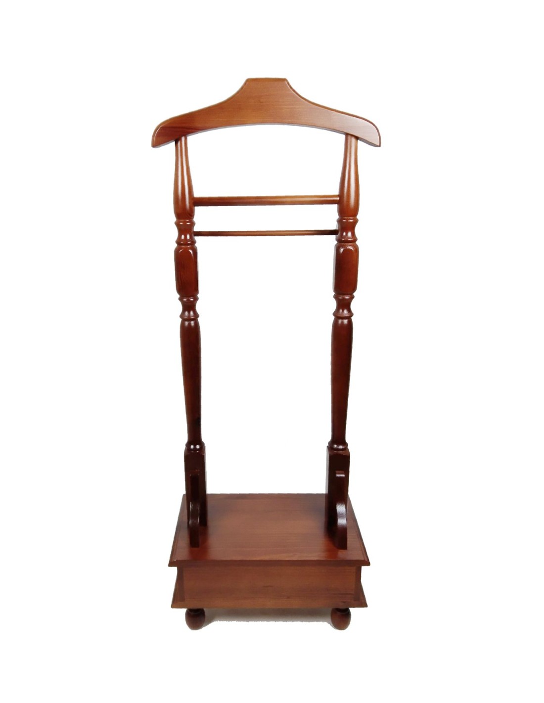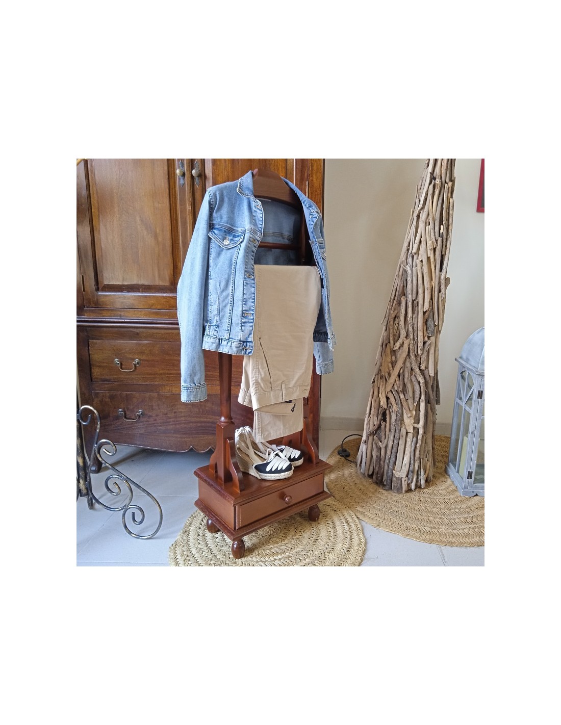 Afegeix estil i funcionalitat a casa teva amb aquest galant de nit de fusta massissa. Ideal per a dormitoris i qualsevol altra sala, aquest penjador compta amb un calaix per a emmagatzematge i un prestatge per a les teves sabatilles. Perfecte per tenir les peces a mà i aportar un toc decoratiu i vintage al teu espai. És un regal ideal per a qualsevol ocasió.