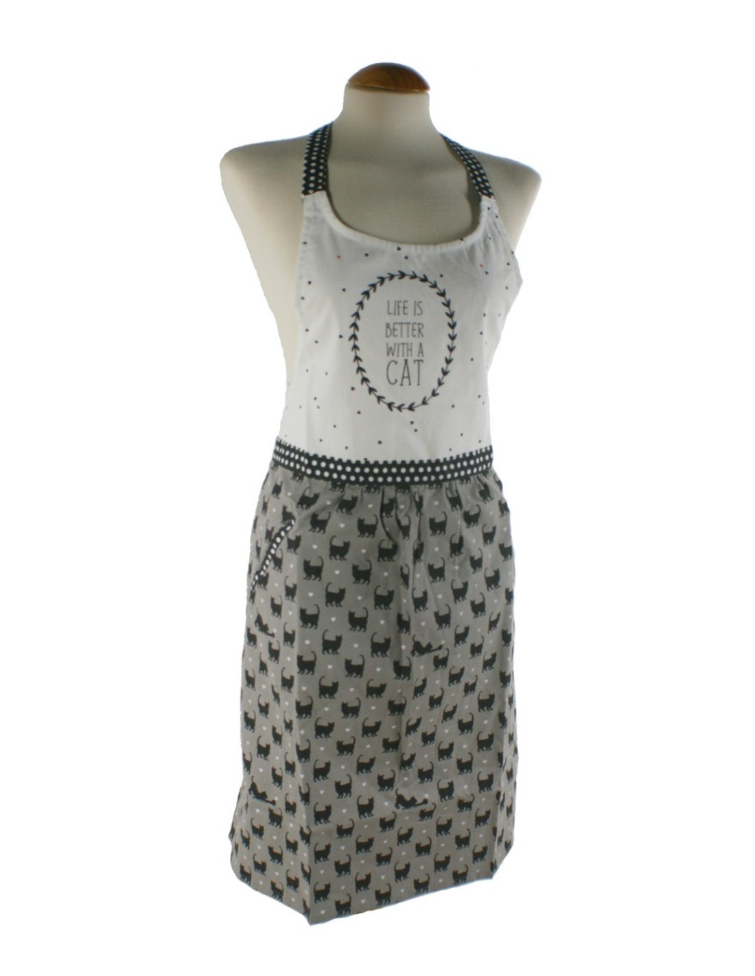 Davantal per a cuina peto ajustable estil vintage dos colors amb disseny gatets. Mesures: 85x70 cm.