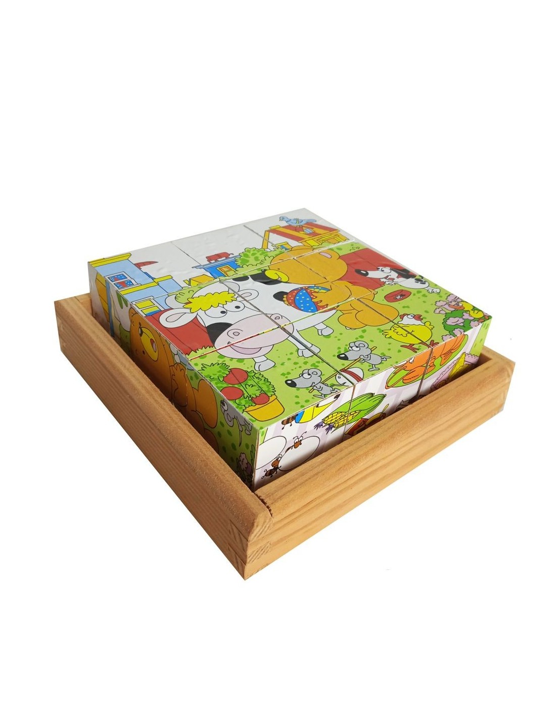 Un puzle clàssic de taula amb nou galledes de fusta que formen sis imatges diferents d'óssos. Ideal per a nens petits, estimula la motricitat i la concentració.